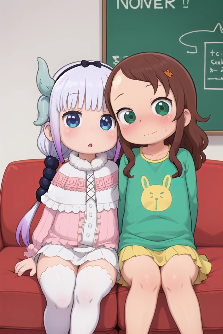 Kanna -> imkanna + dress, capelet, dragon horns, low twintails, white thighhighs