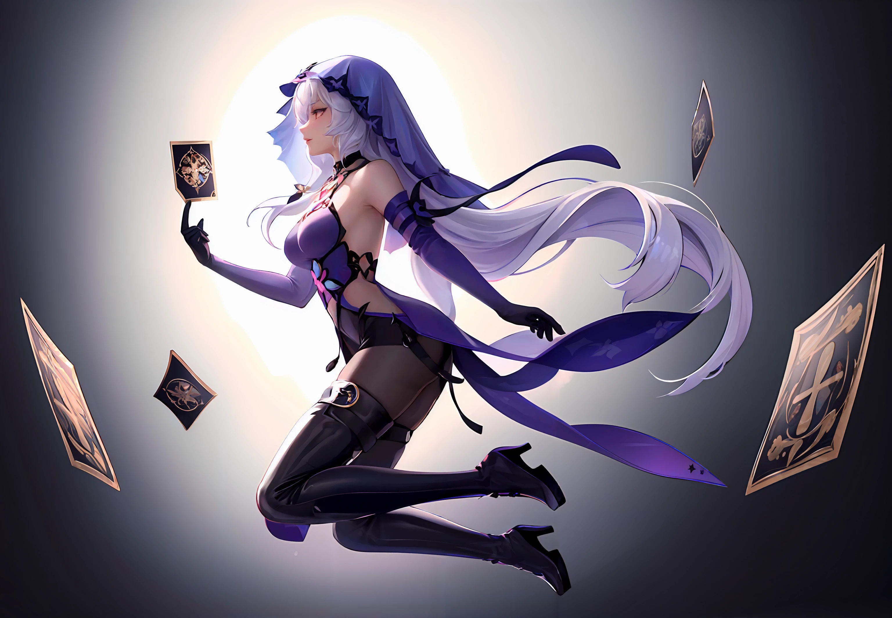 blackswan, veil, elbow gloves, black pantyhose, thigh boots