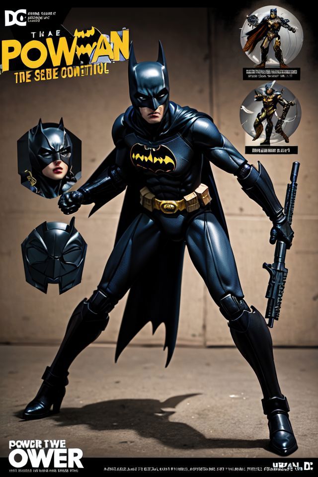 (Dutch angle:1.3), (ActionFigureQuiron style), solo, Wonder Woman (DC Comics): Wonder Woman's iconic armor, tiara, and Lasso of Truth make her a powerful and empowering character to cosplay , action figure box, weapon, wings, high heels, no humans, (reference sheet:1.ower armor,