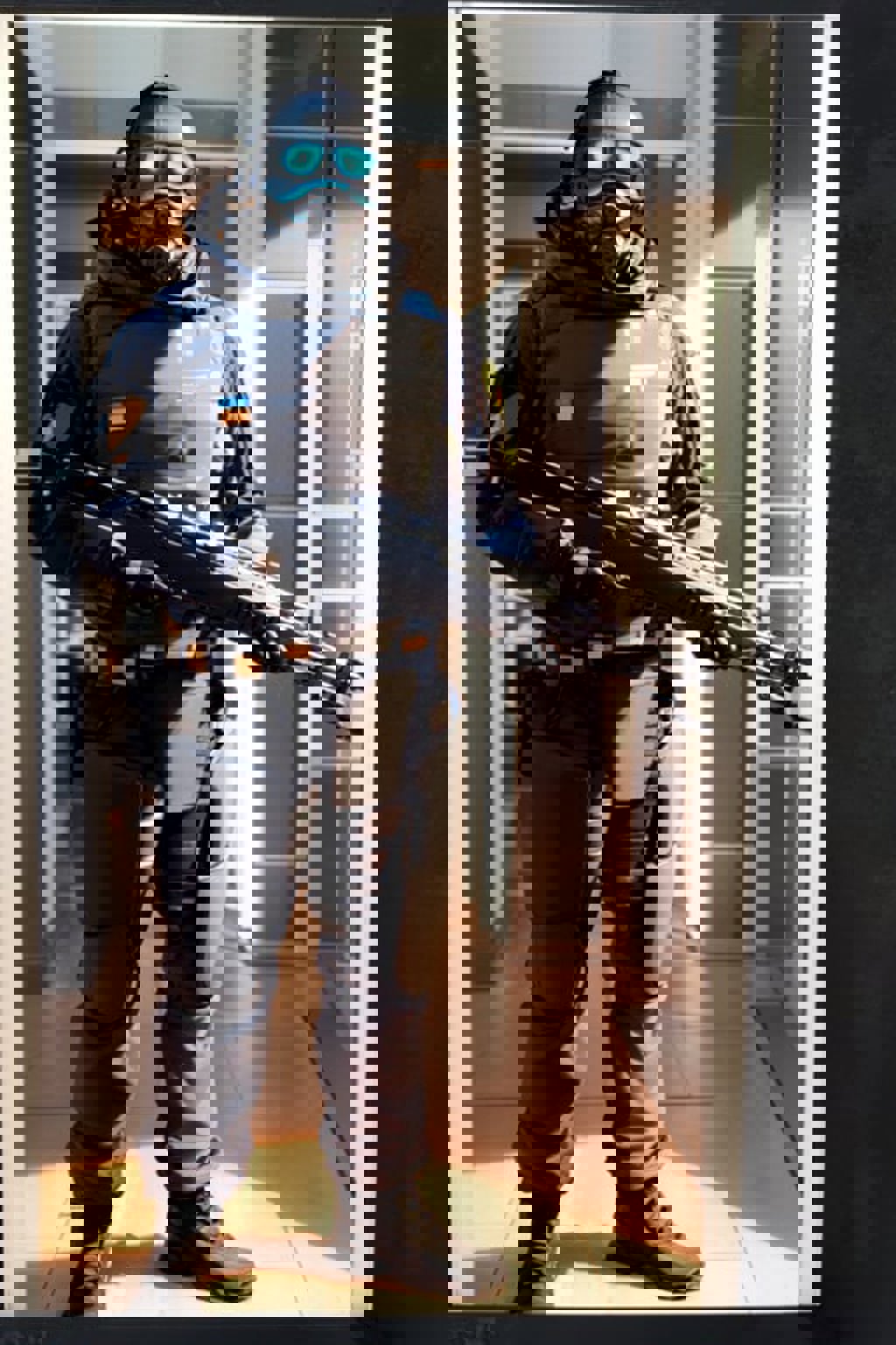 -A good amount of images were trained with characters holding guns, so its slightly better at doing that than usual.