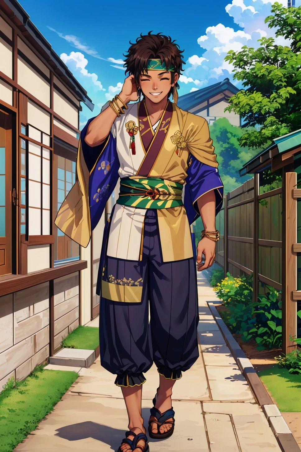 golClaude, jewelry, japanese clothes, bracelet, headband, sandals