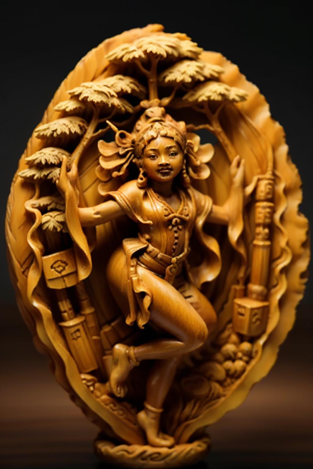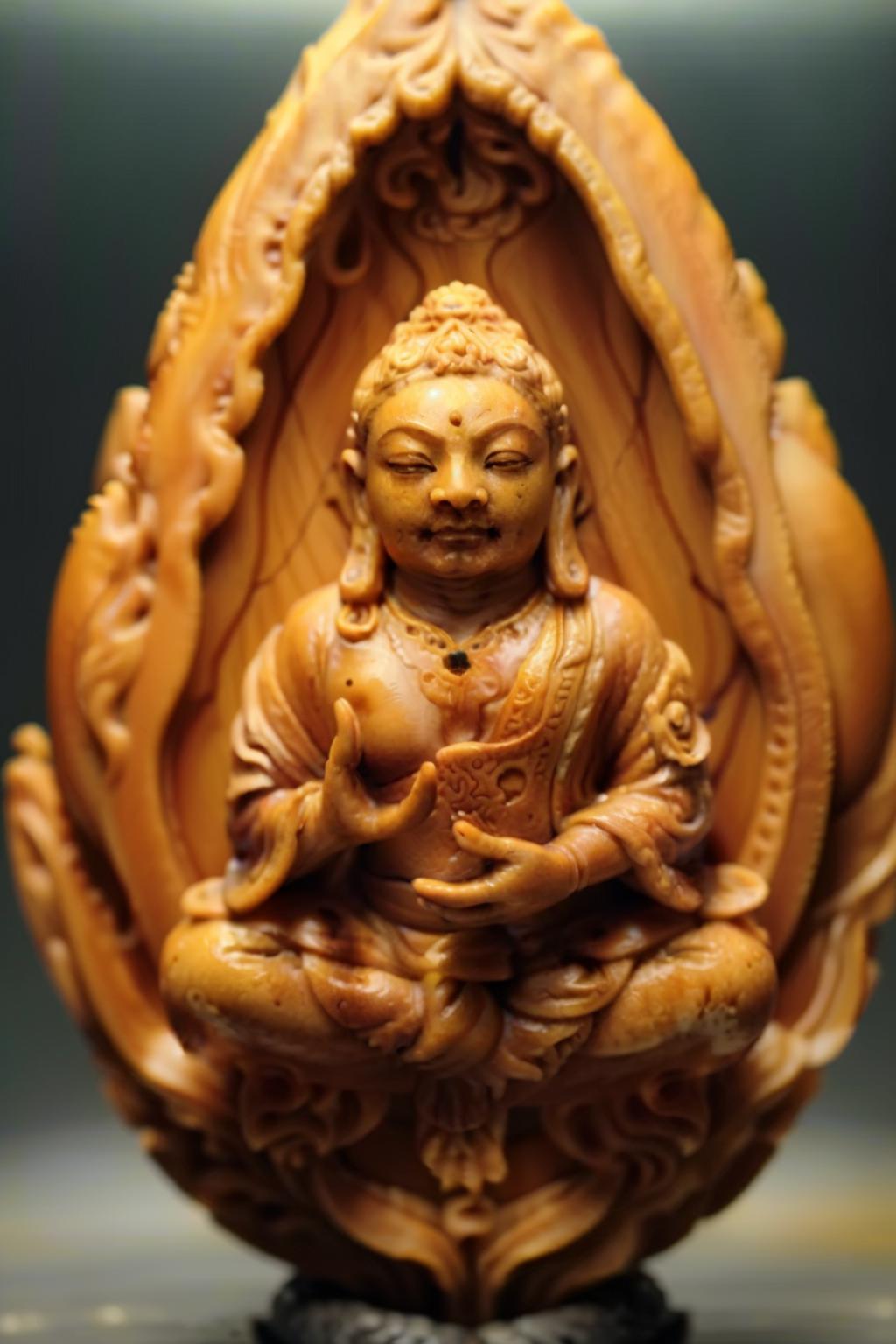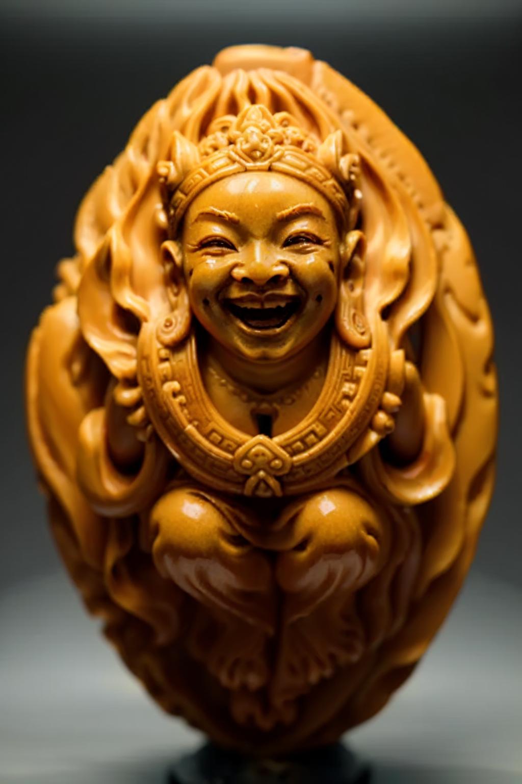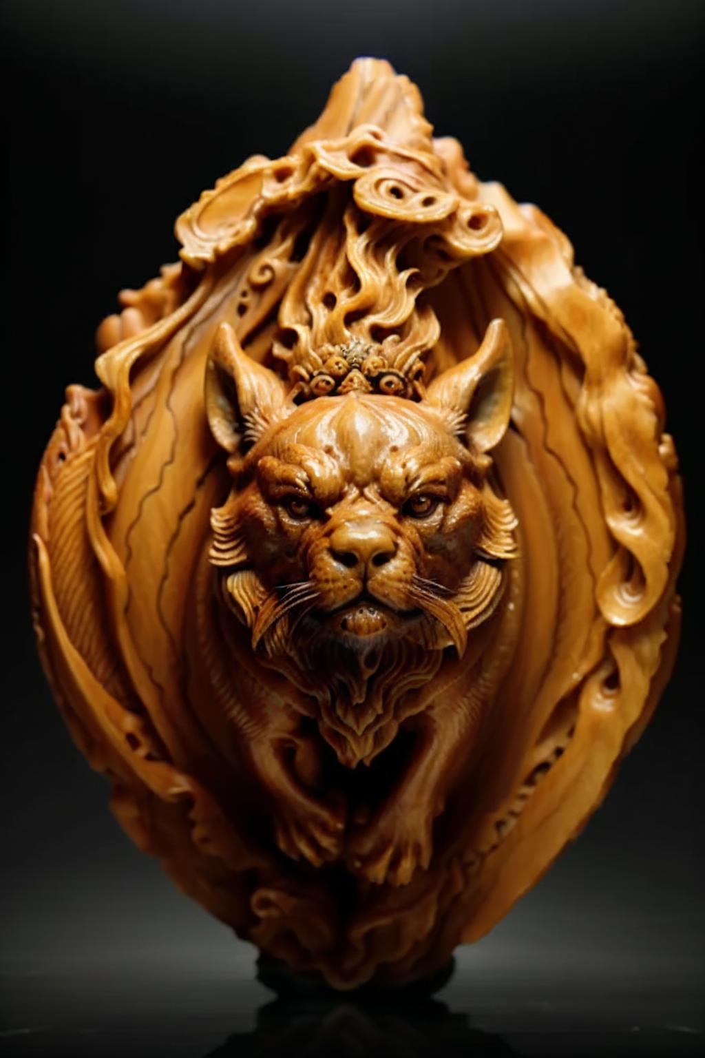 The model was trained using 50 authentic Chinese nut-carving artworks, enabling it to generate traditional Chinese-style nut-carving pieces.