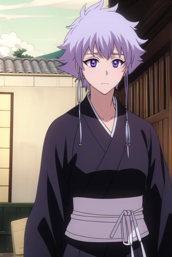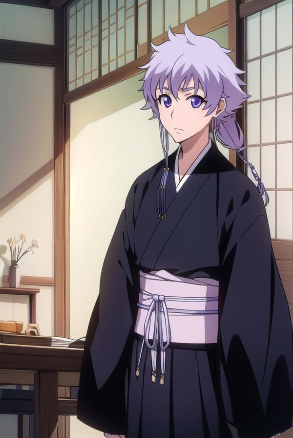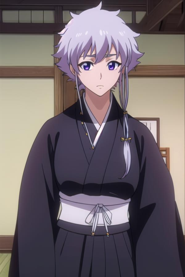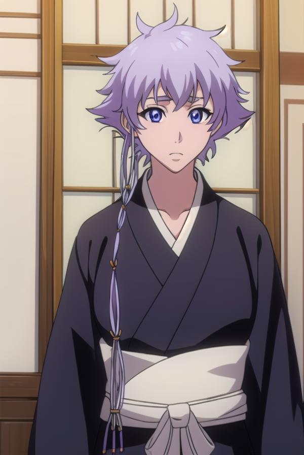 isane kotetsu, short hair, braid, purple hair, (purple eyes:1.1), hair braid,