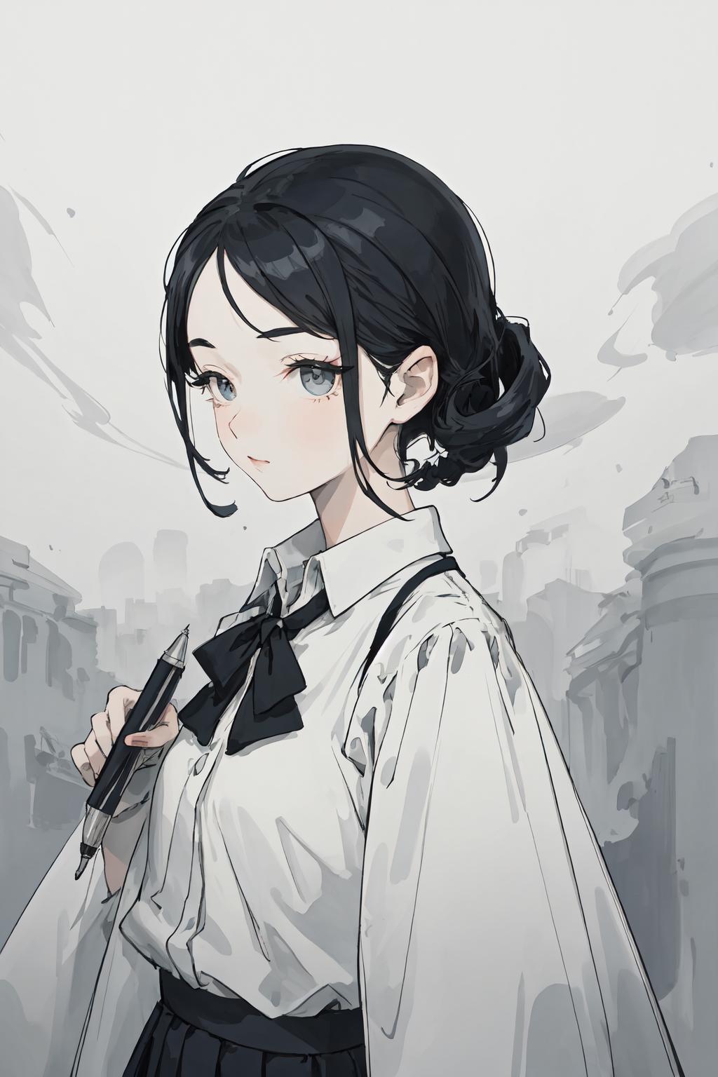 The art style is a bit more 2D than the mainstream anime art style, with slightly yellowish and old tones,