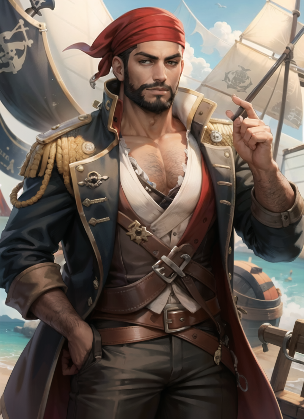 This LoRA can help generate pirate outfits, including pirate outfits and pirate hats, as well as coats and jackets for captains.