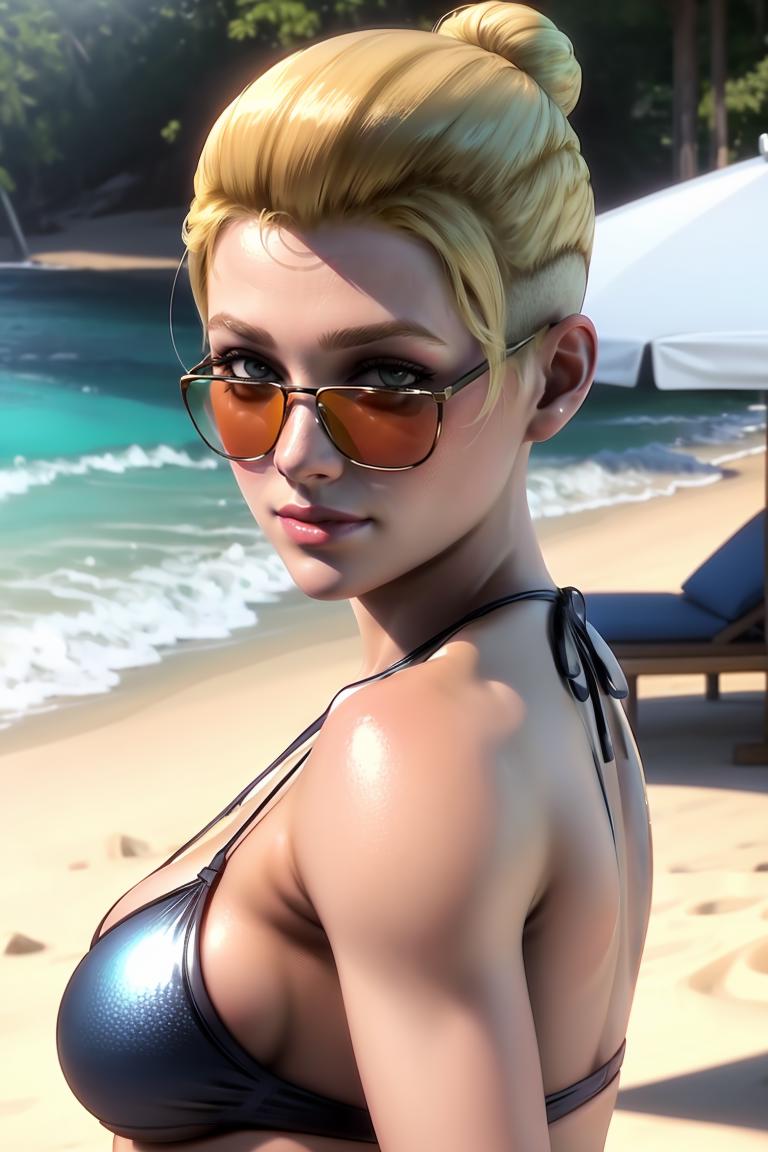 This is Cassie Cage from Mortal Kombat 10 (i.e the Superior one since they dulled her down in 11).