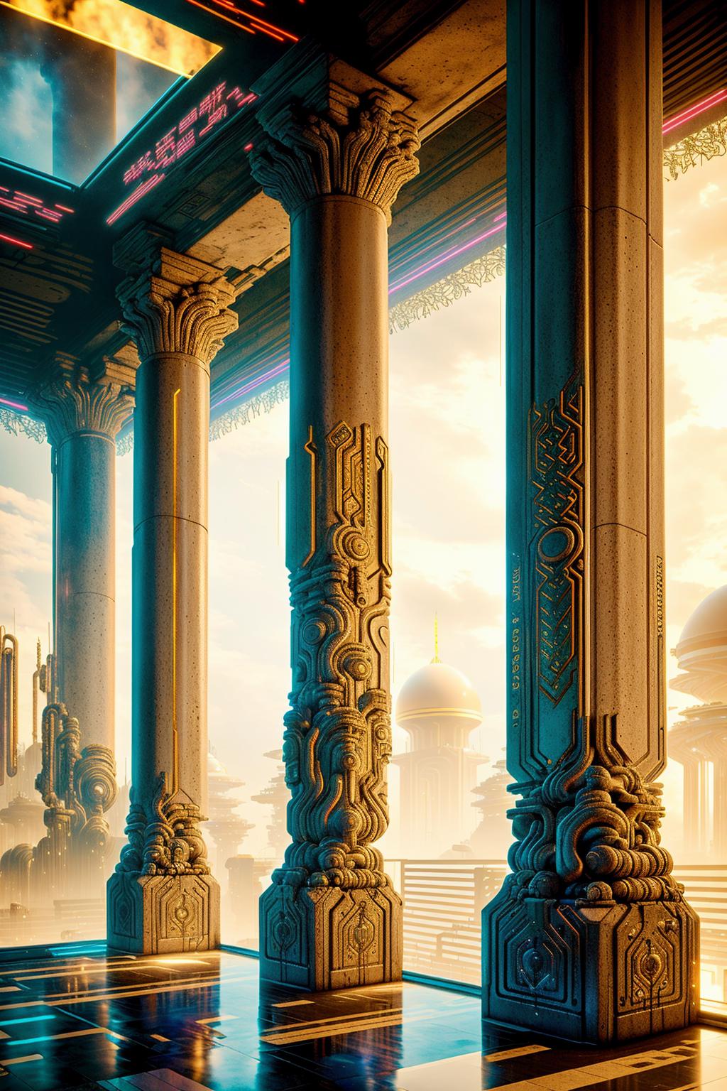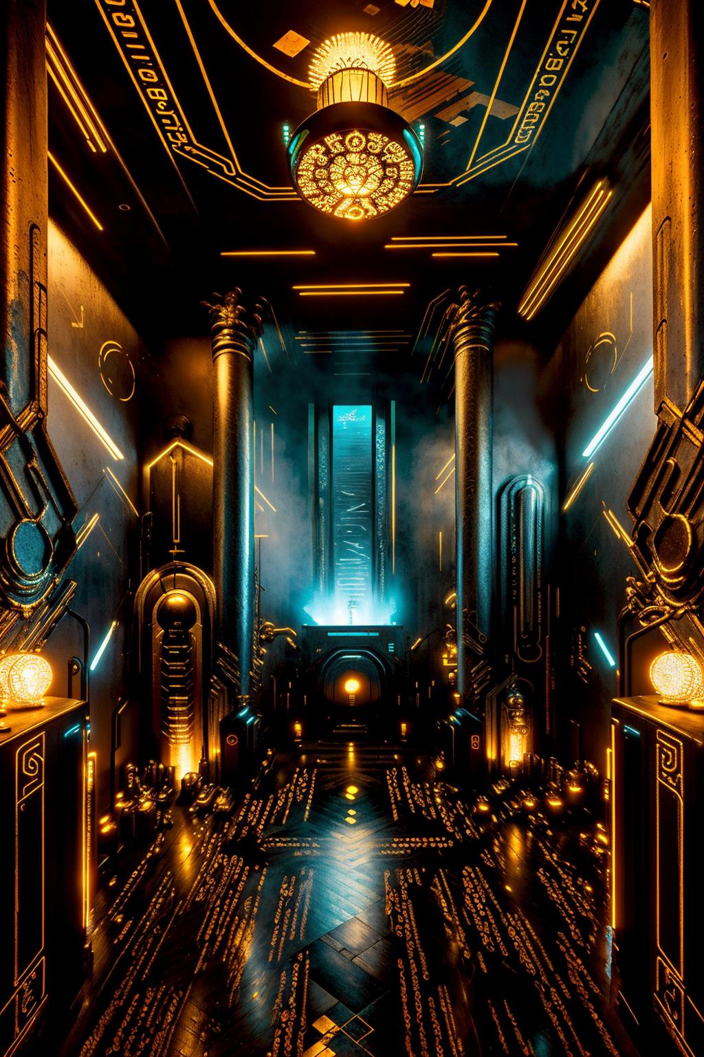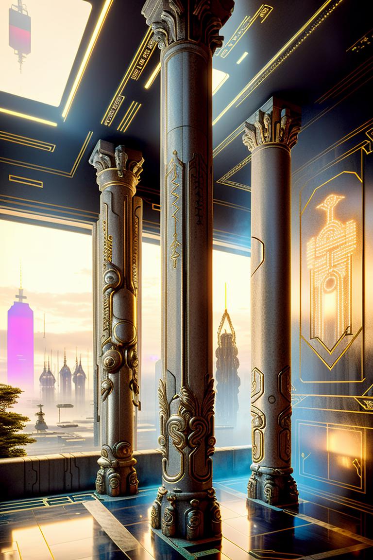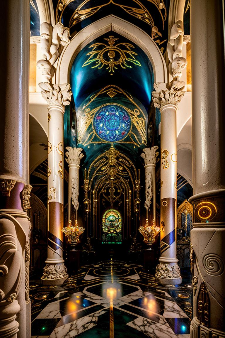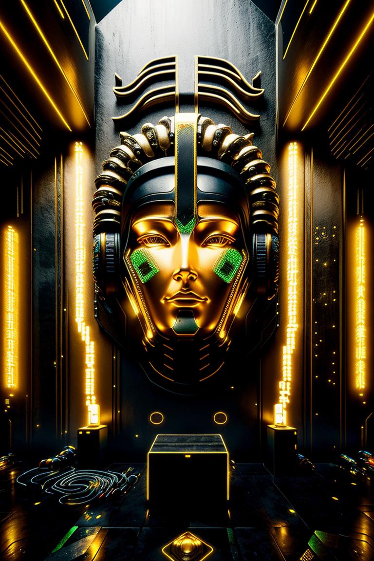 Cyber Esoteric Model, trained for 10 epochs and 2640 steps, seamlessly blends the mystical allure of esoteric and new-age temples with the futuristic vibes of cyberpunk places. The model expertly merges Egyptian and pagan elements to create mesmerizing and otherworldly environments.