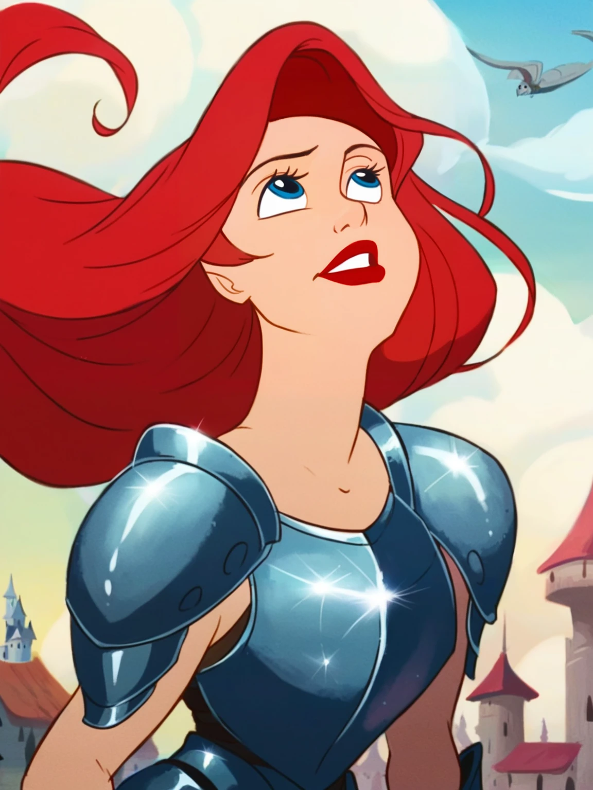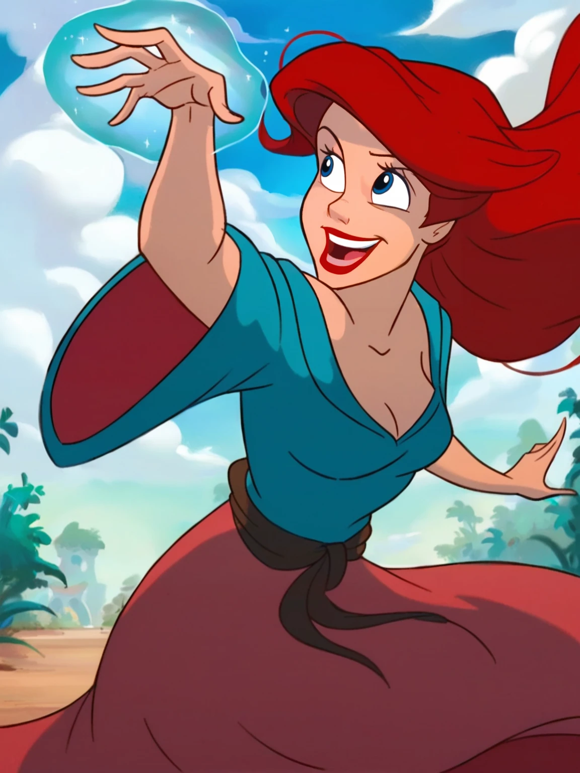 Recommend prompt: "ar_el, 1girl, fair skin, red lips, red hair, large aqua-blue eyes" + "green fish-like tail, mermaid"