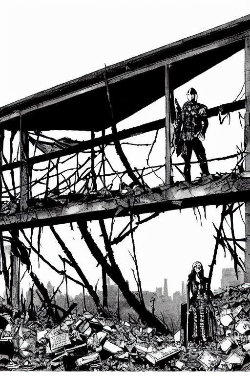 It's the Apocalypse; everything ended but wait, there are still some heroes and villains in what remains of the world and their story is just about to begin as everybody else's has ended, that's the subject of this art style. This model is trained on RPG illustrations featuring pencil shading and ink outlines. It's the typical drawing style used in less stylised illustrations of the late 1990s and early 2000's which were employed by medium budget RPG's.