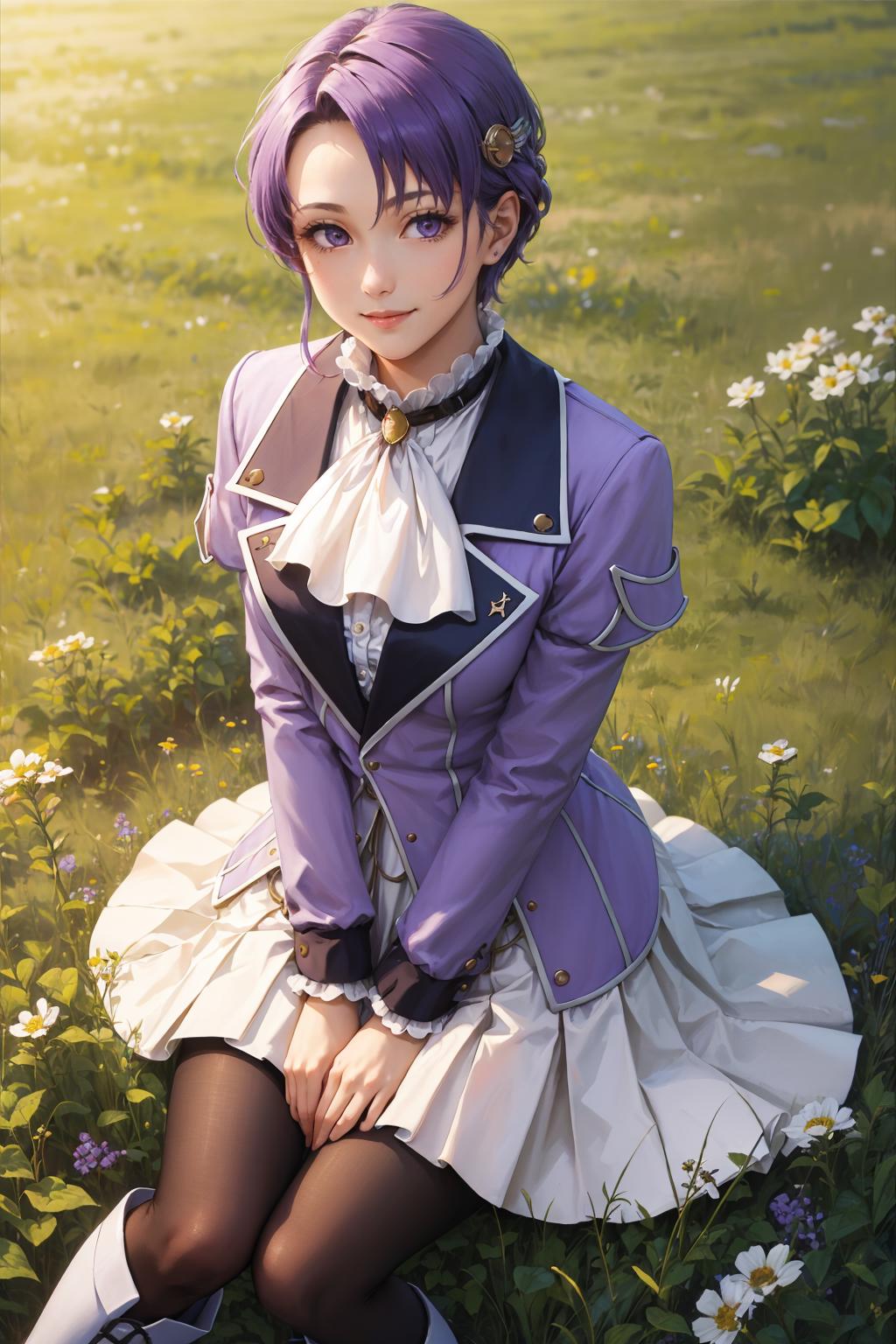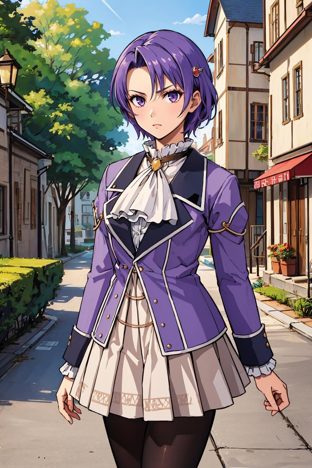 Add "3rdKloe, hairclip, ascot, purple jacket, pleated skirt, pantyhose" for her 3rd/Zero look.