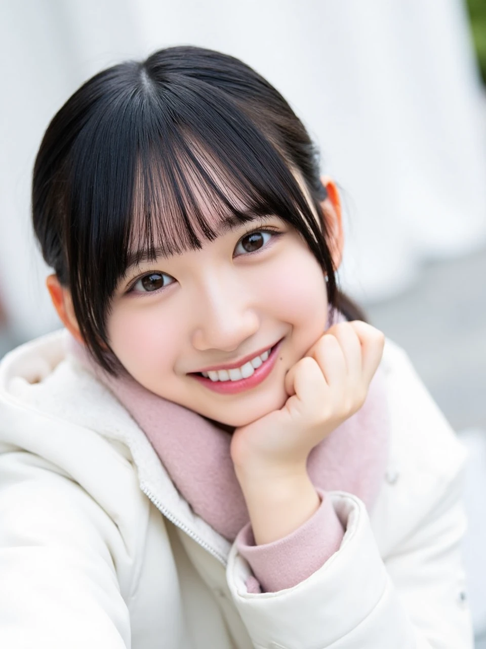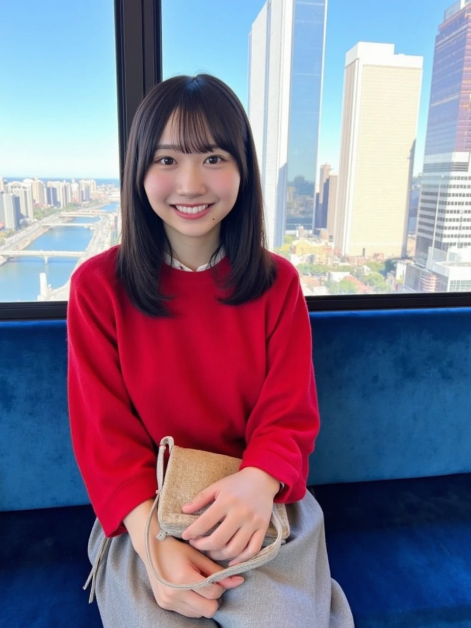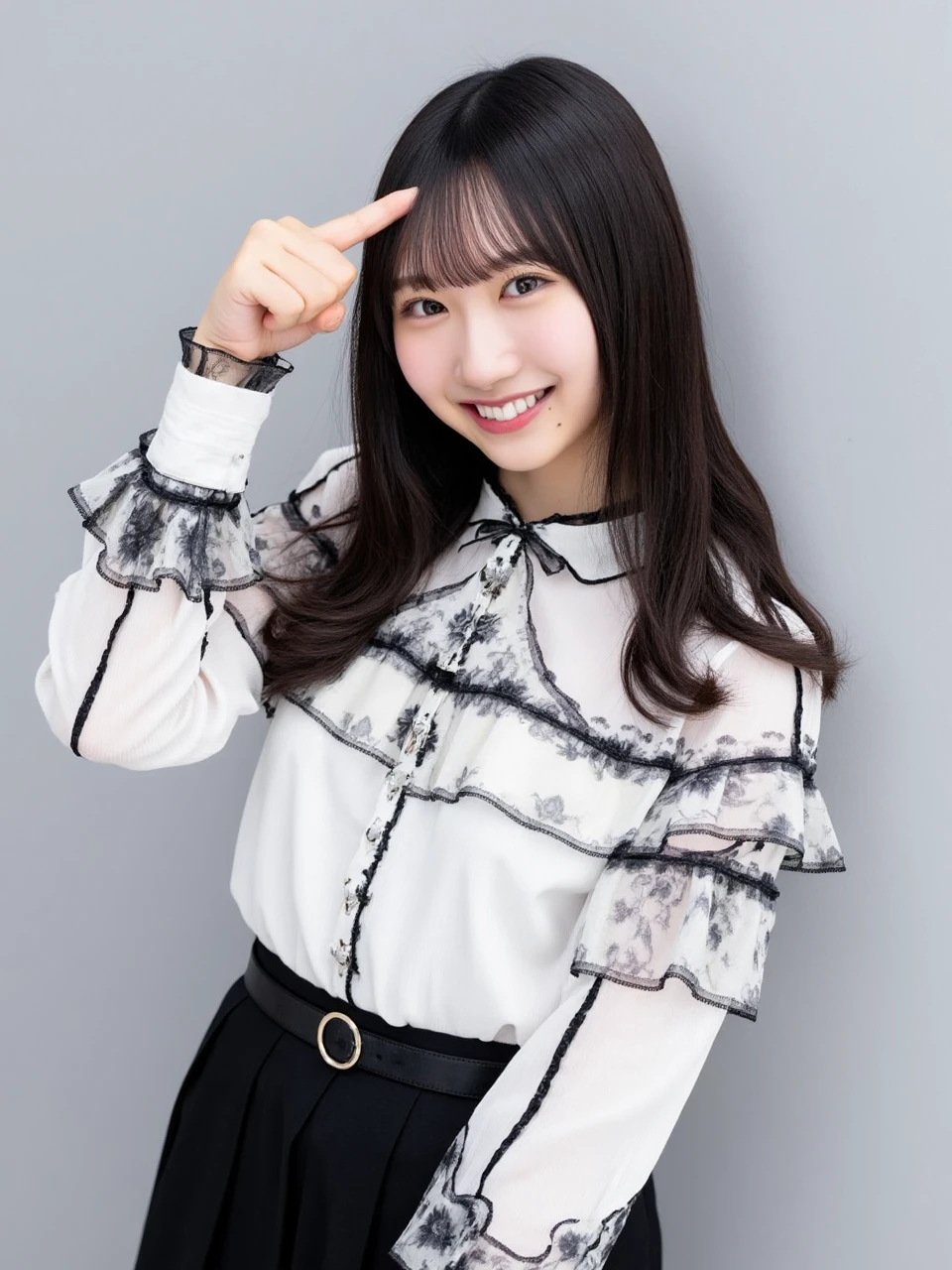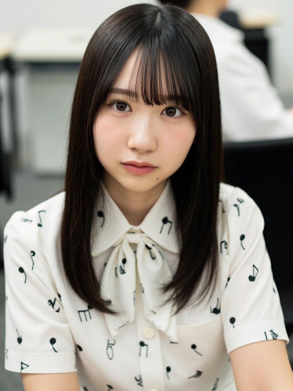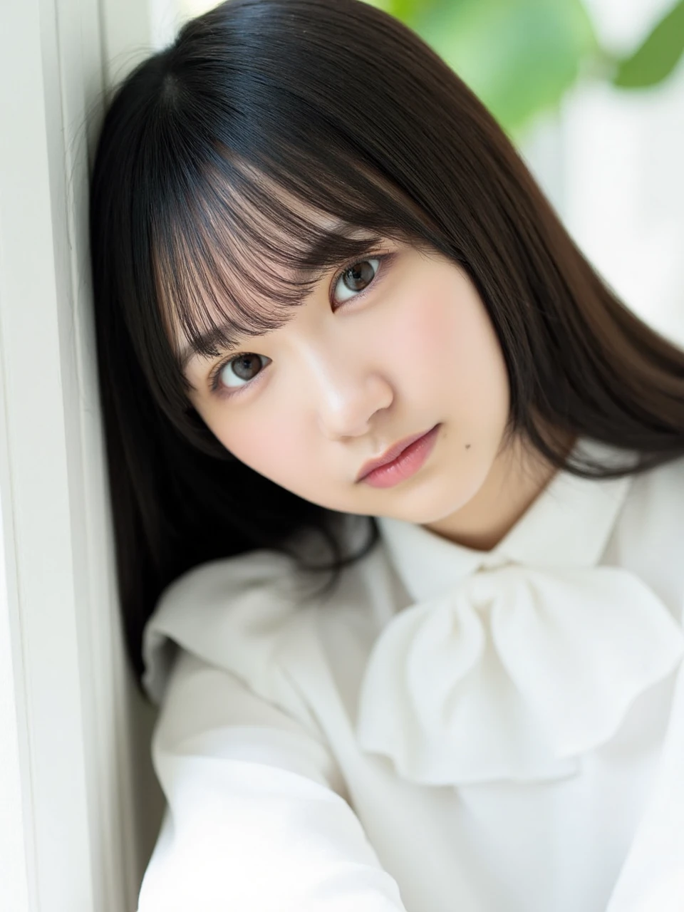 Prompt: A young Asian woman named kahorin. She has long straight hair, styled in two low ponytails.