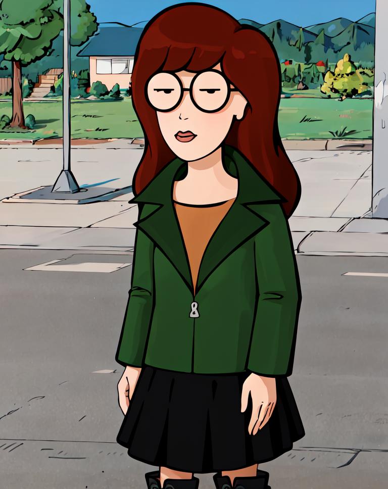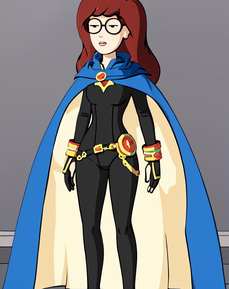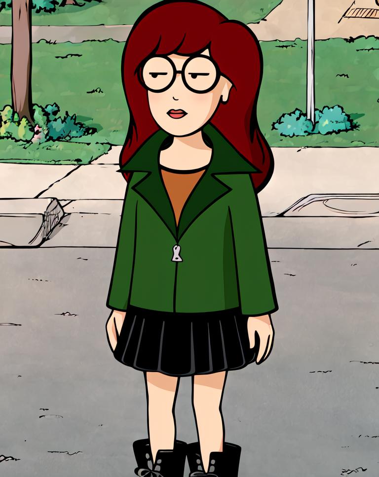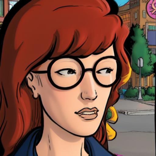 V1 - use retro artstyle, 1990s_\(style\), traditional media, beavis and butt-head style, if you want the Beavis and Butt-Head version of her.