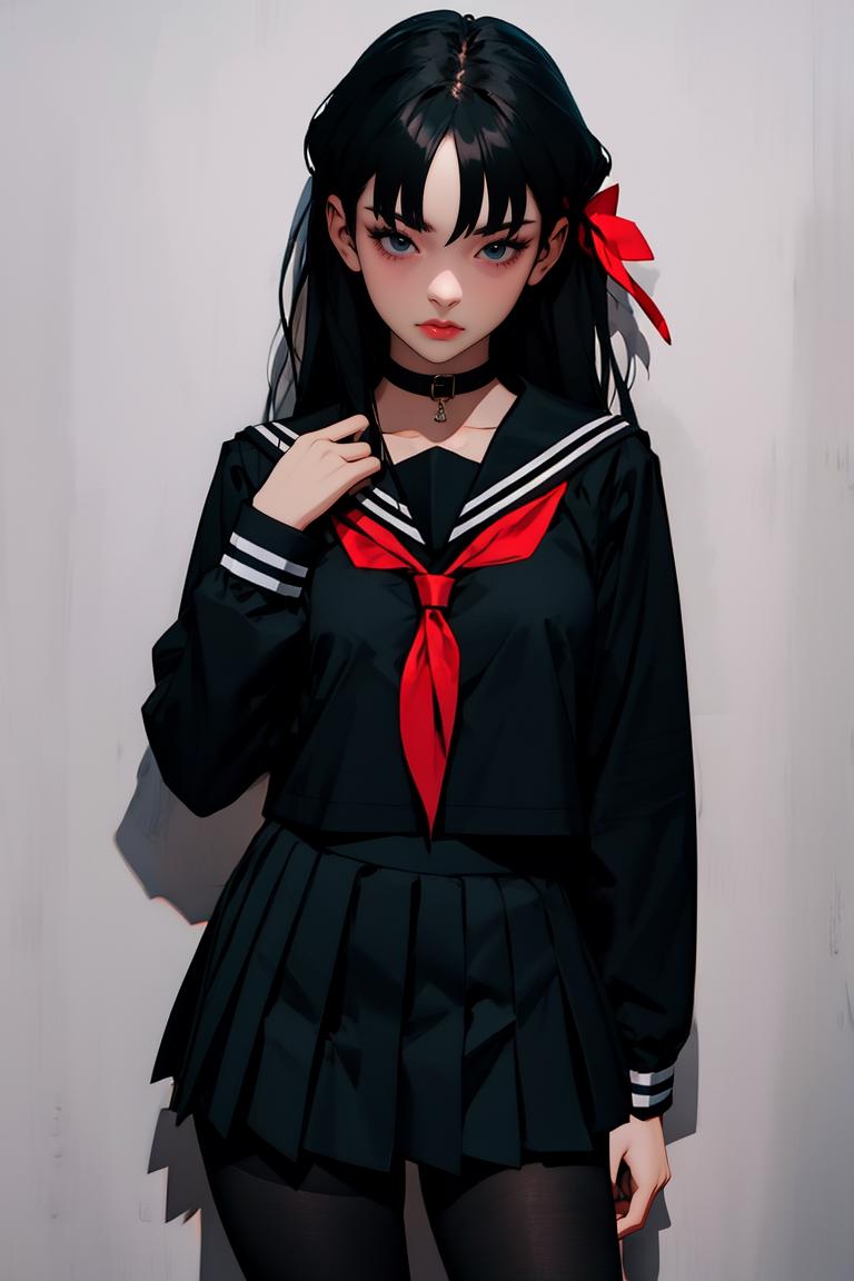 4、触发词为:tutututu,black school uniform,black serafuku, sailor collar,black miniskirt, long sleeves, 都写上的话,如果能正确出图,参数设置无误,又没有其他LORA干扰,大概率会几乎100%还原原版衣服。