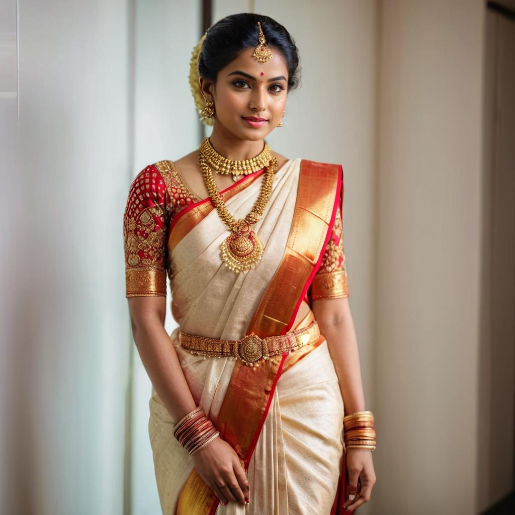 The South Indian Bridal Saree LoRa is an intricately crafted representation of the elegance and cultural richness in the traditional bridal attire of South Indian state of Tamil Nadu.