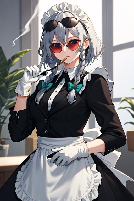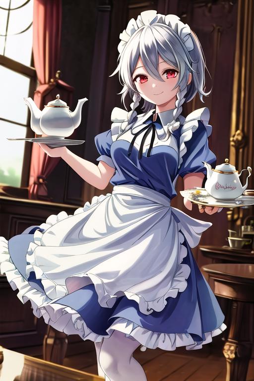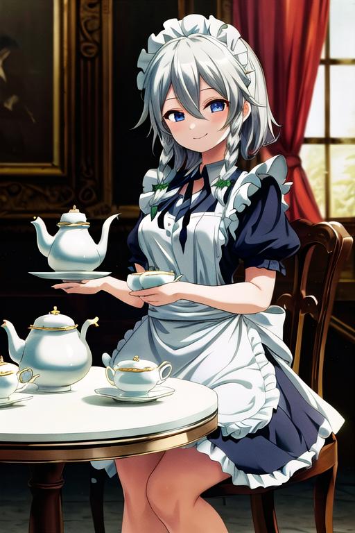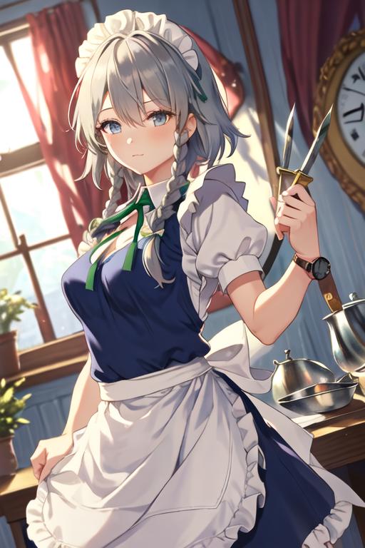 同时使用izayoi_sakuya_touhou.safetensors作为LoRA。
