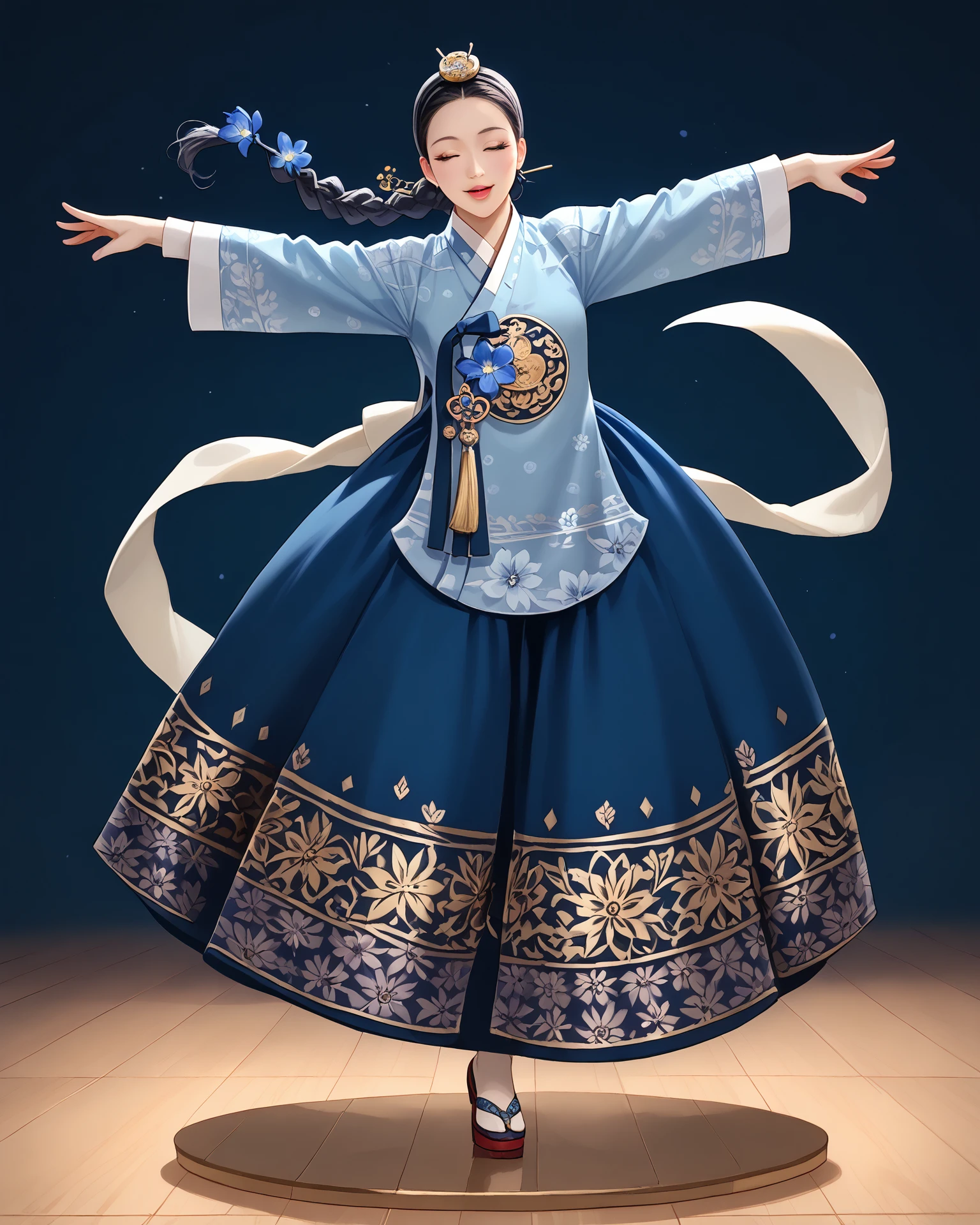 A lora to generate dangui hanbok, a style of hanbok that was popular with upper class women during the Joseon era. It's also pretty good at doing traditional Korea hairstyles as well, which you can boost by adding "updo" in the prompts.
