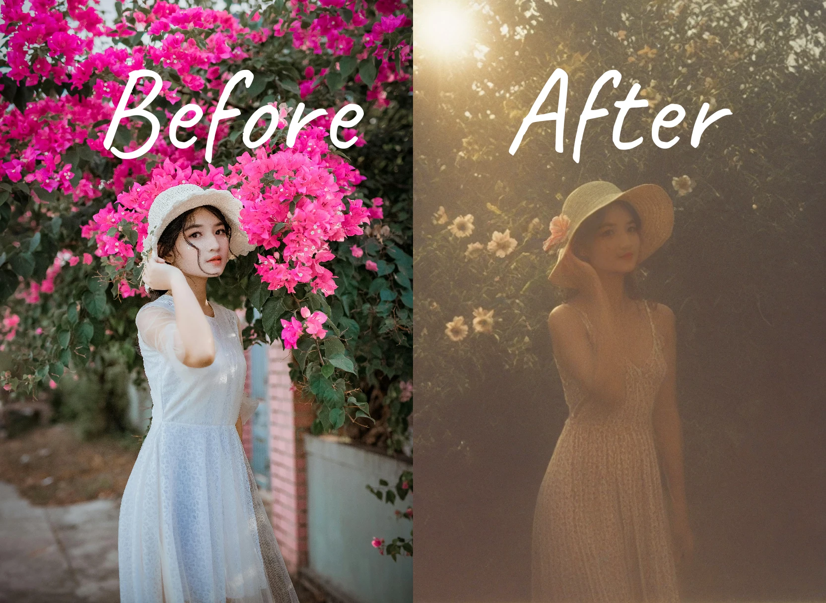 Converti le tue foto nell'aspetto degli anni '90. Colore grezzo della fotocamera, perdita di luce e stile di foto analogico.