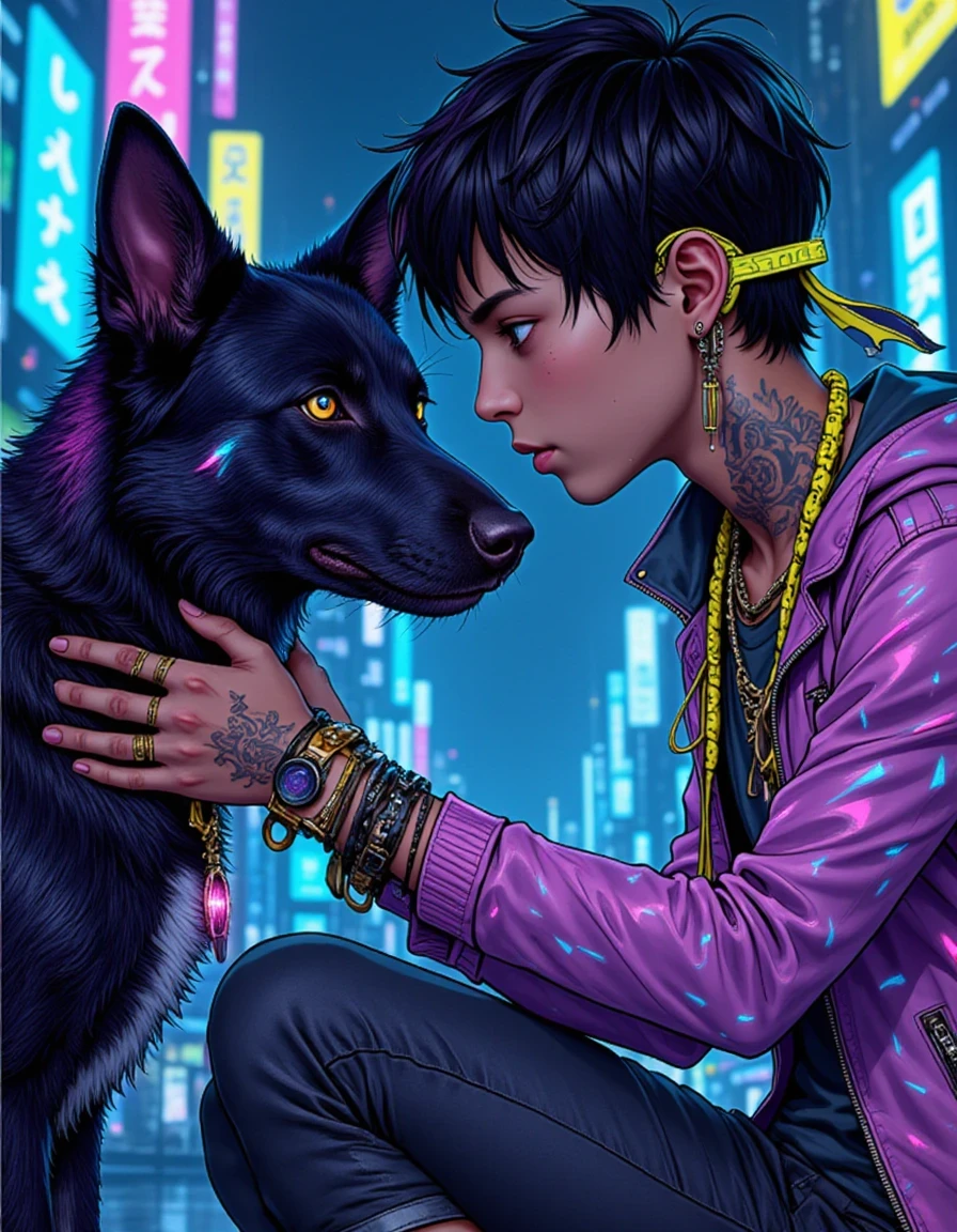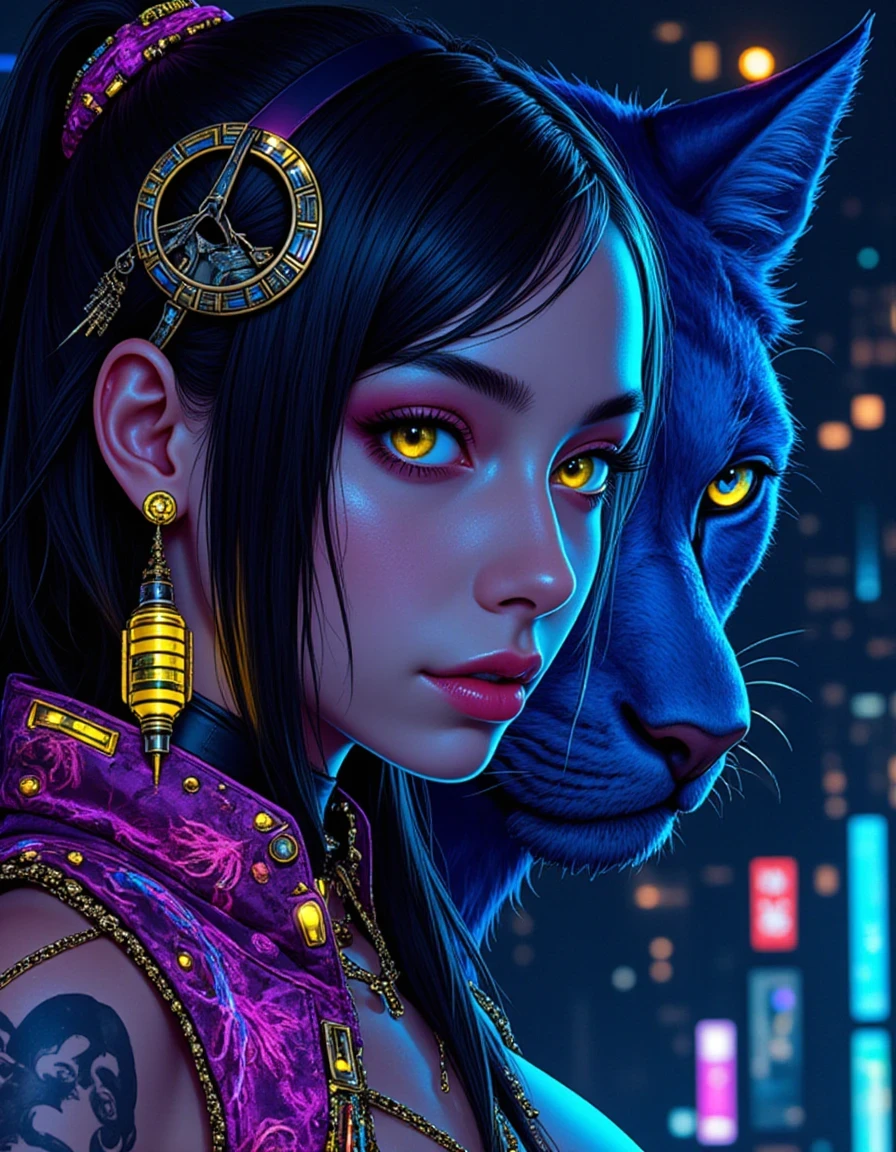 Crea un'immagine in stile illustratore che combina un personaggio e la sagoma di una bestia selvaggia.