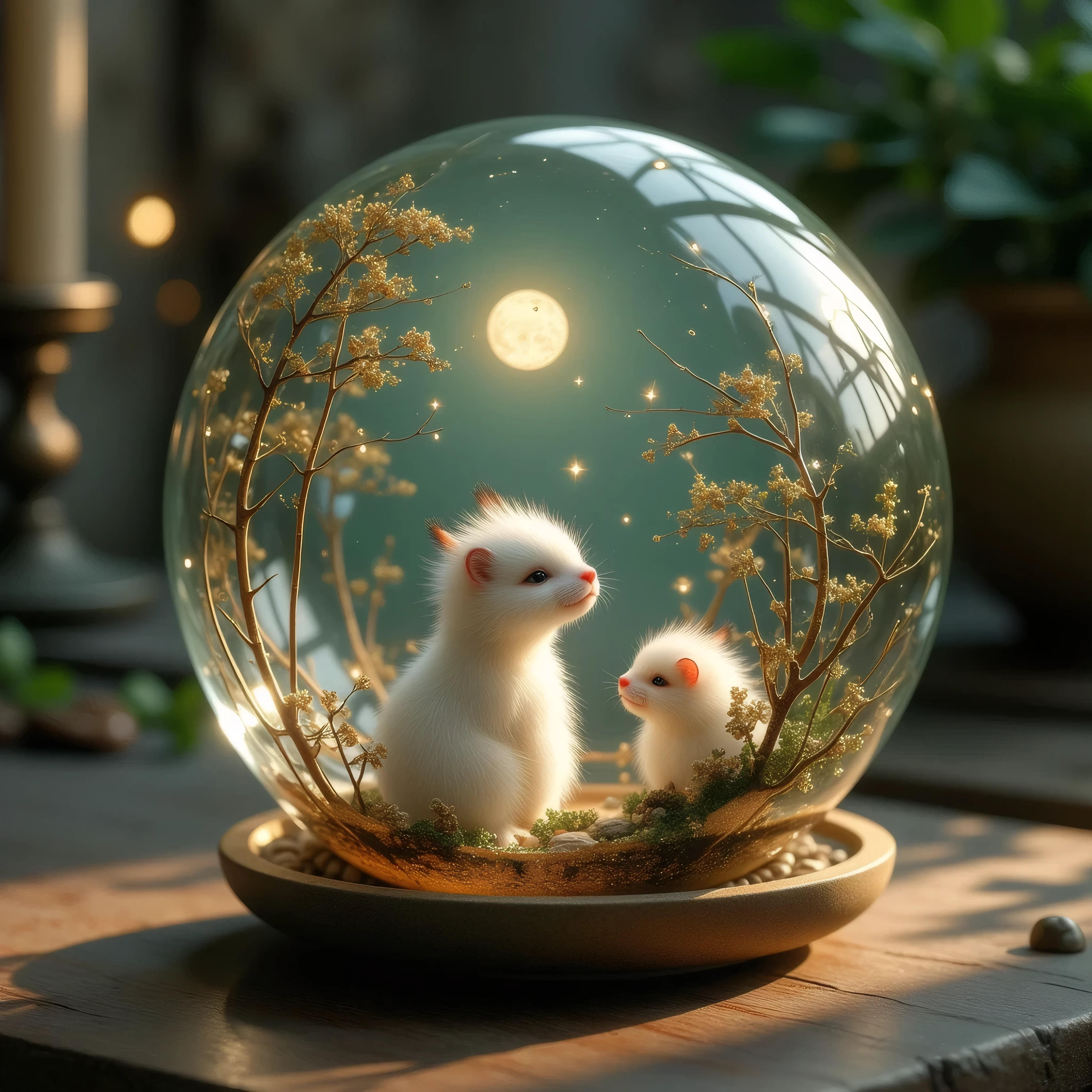 Costruisci un tavolo a sfera di cristallo ,, puoi inserire ciò che vuoi generare nel prompt, Ad esempio, un simpatico gattino 。