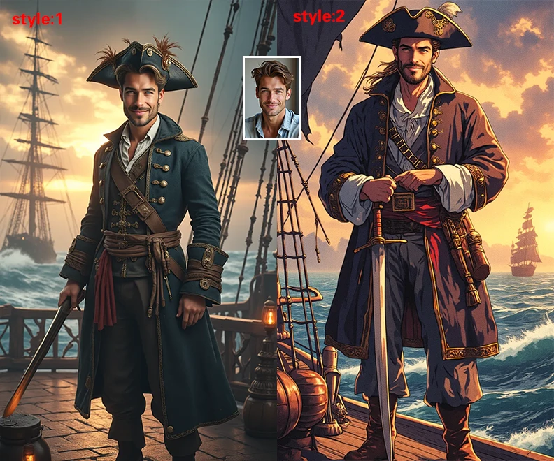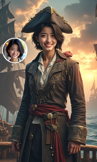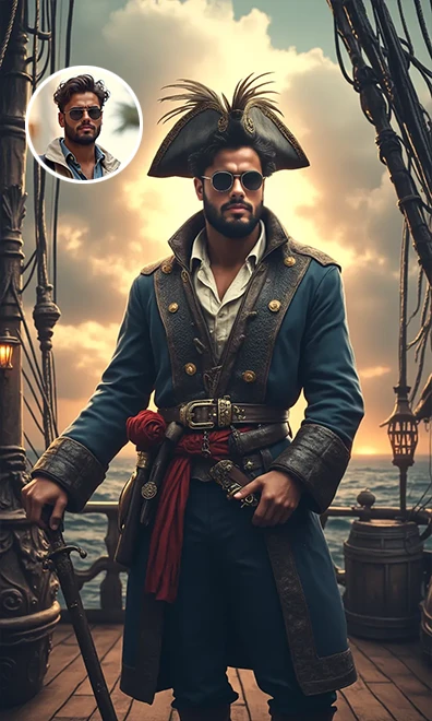 Basta caricare il ritratto e fare clic su Crea per ottenere un realistico Pirati dei Caraibi;