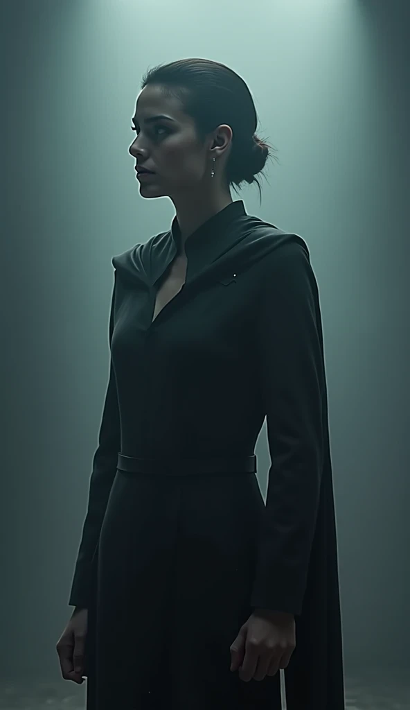 The image should have a cinematografico, stile iperrealista con luci dinamiche e drammatiche contrasti . L'atmosfera dovrebbe evocare un senso di leggenda , mystery , e saggezza , con una tavolozza di blu profondi, viola, and gold to rePRESENTE her enigmatic nature. She is a warrior, una filosofa , e una custode della verità, entrambe temute e venerate in tutte le galassie ."