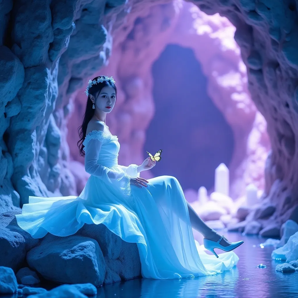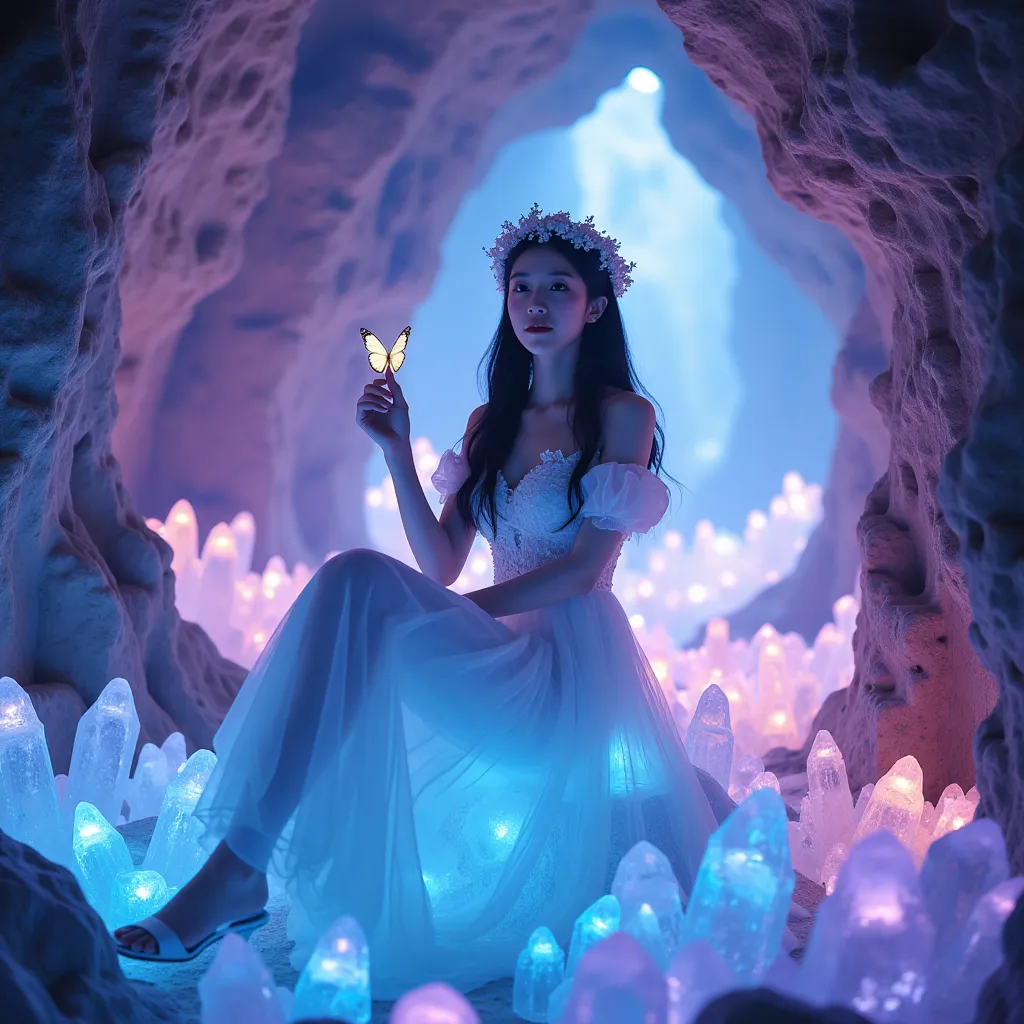 Carica un'immagine del suo viso per generare un'immagine della ragazza nella grotta