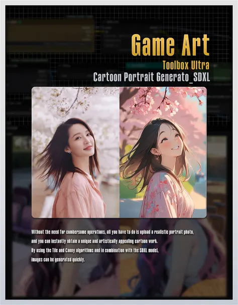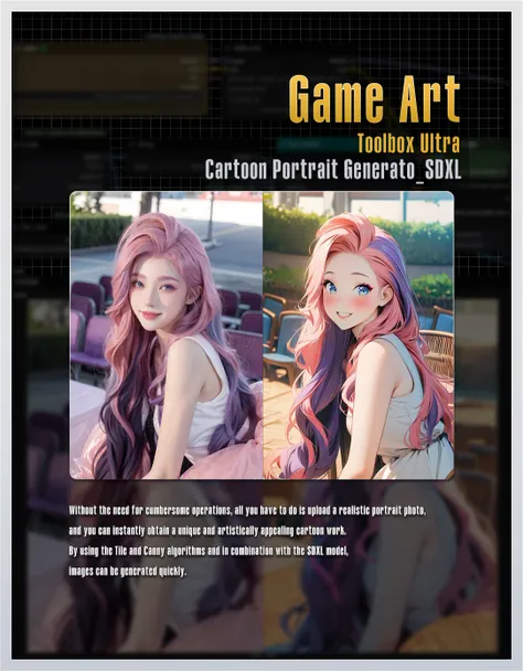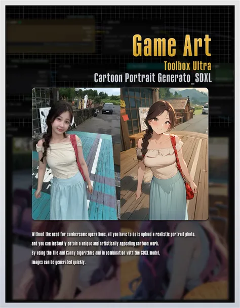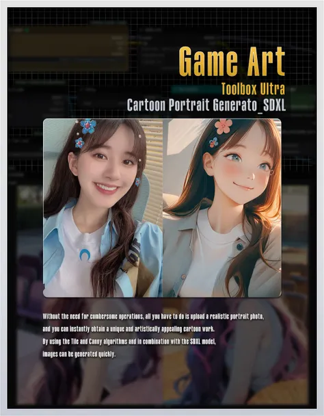 Non sono necessarie operazioni ingombranti. devi solo caricare una foto ritratto realistica, e puoi ottenere istantaneamente opere animate uniche e artistiche. utilizzando gli algoritmi Tile e Canny e in combinazione con il modello SDXL, le immagini possono essere generate rapidamente.