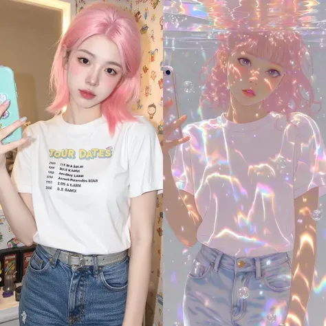 Ingresso di qualsiasi immagine,Trasformato in un interno tono di rosa onirico、Effetto di frammentazione emotiva、Illustrazione emotiva di elementi liquidi