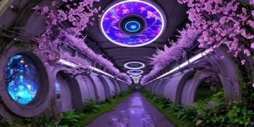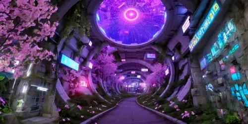 Entra nel rifugio sotterraneo di fantascienza del coniglio cyborg della città al neon, produce 1 immagine ad alta risoluzione adatta ai social e una cinematografica 16:rapporto video 9
