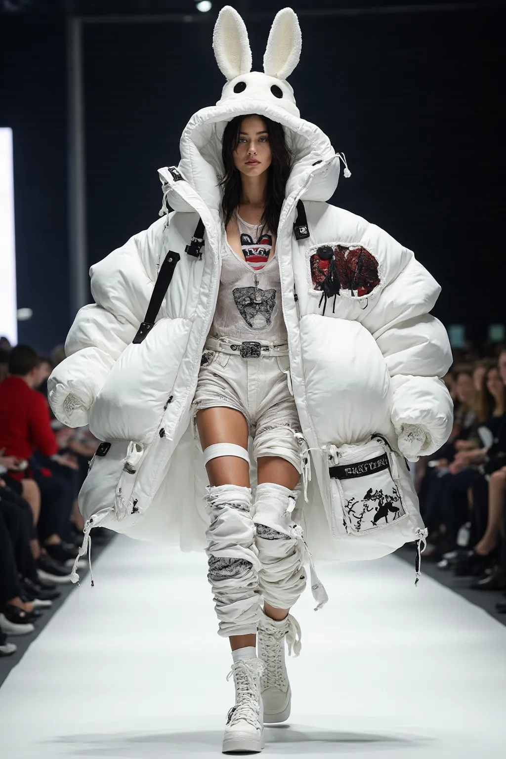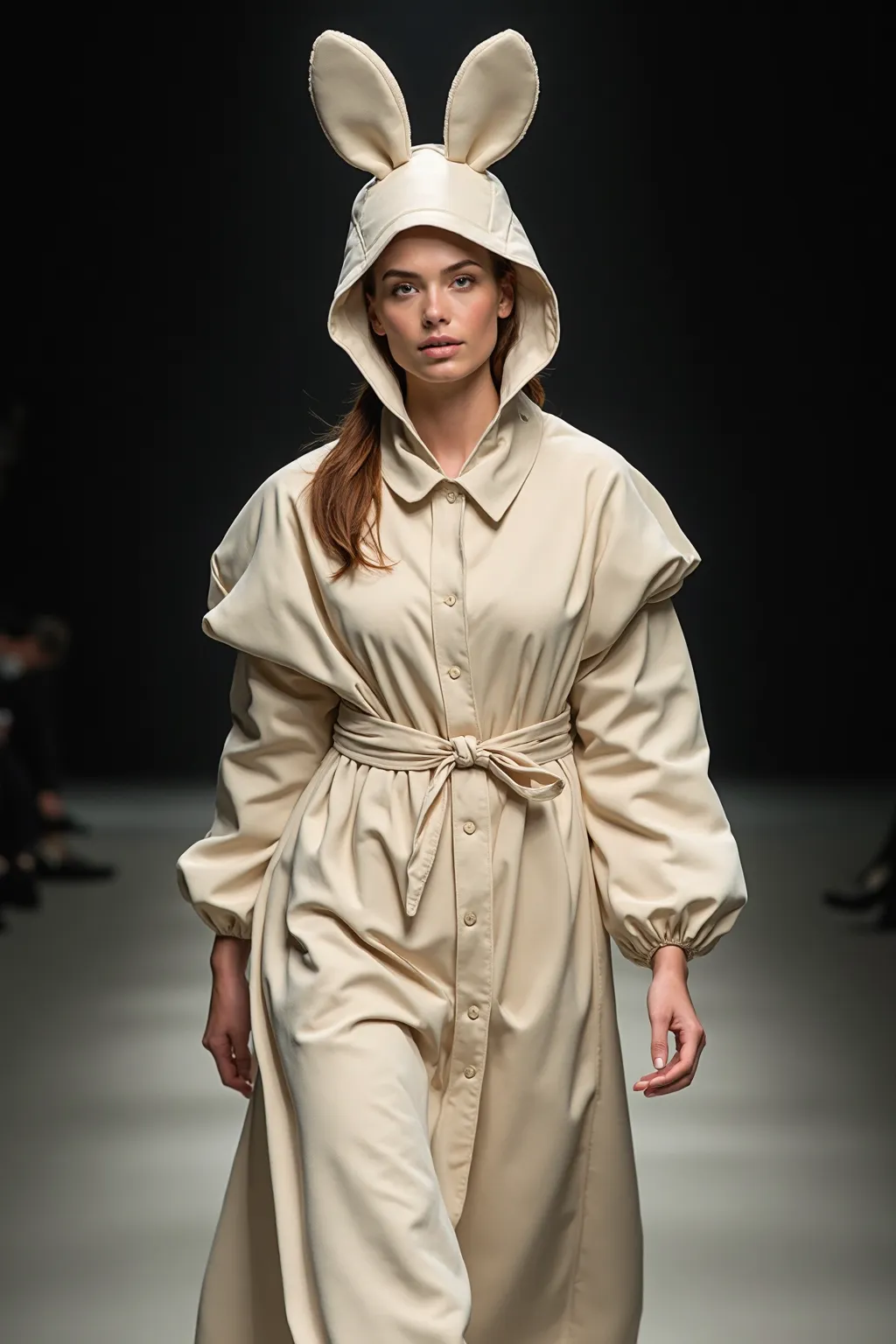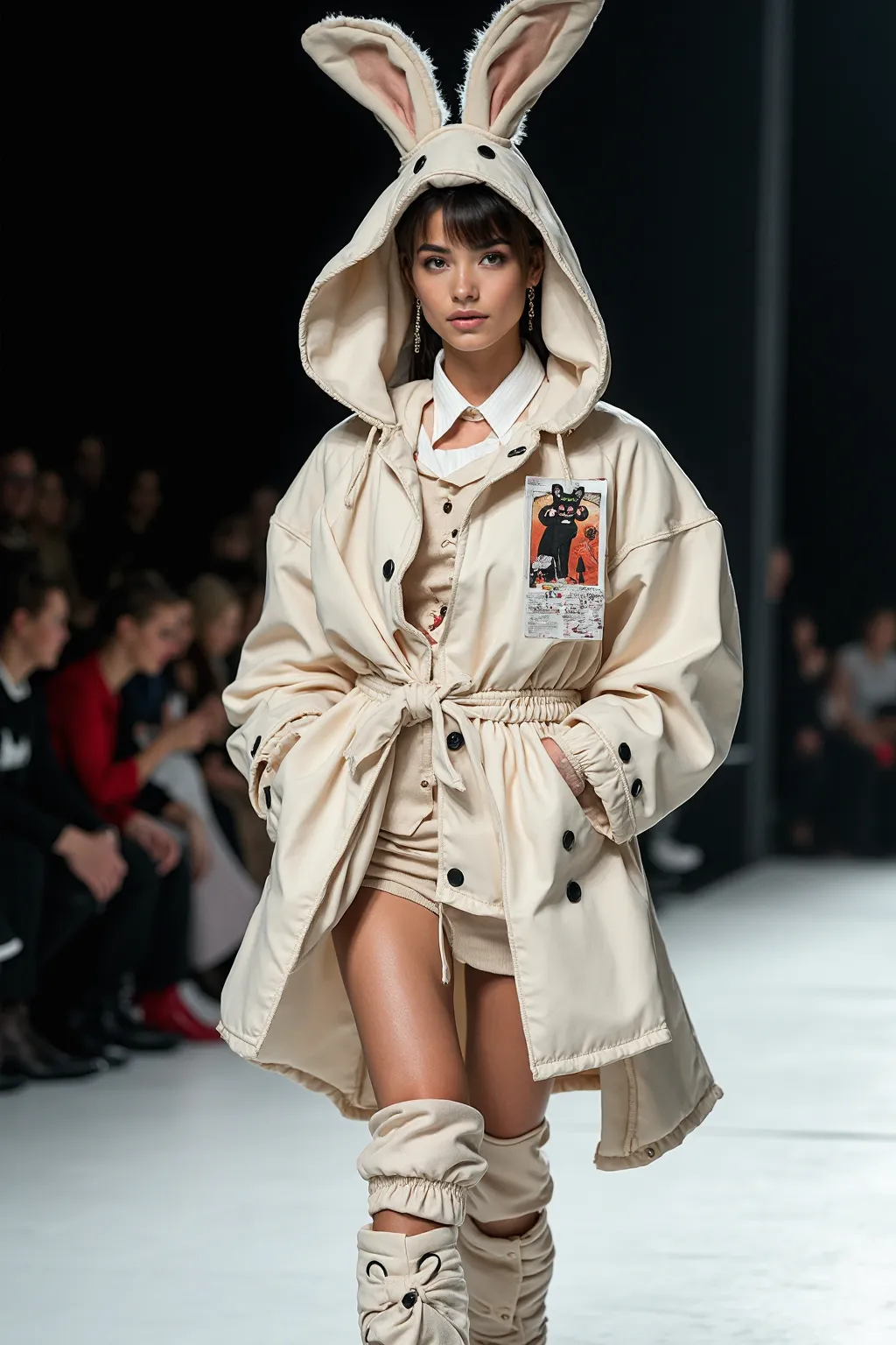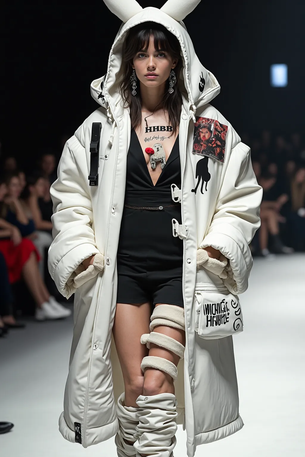 Generazione rapida di una foto,ai photography: Modello di abbigliamento di moda con accessori bianchi per le orecchie