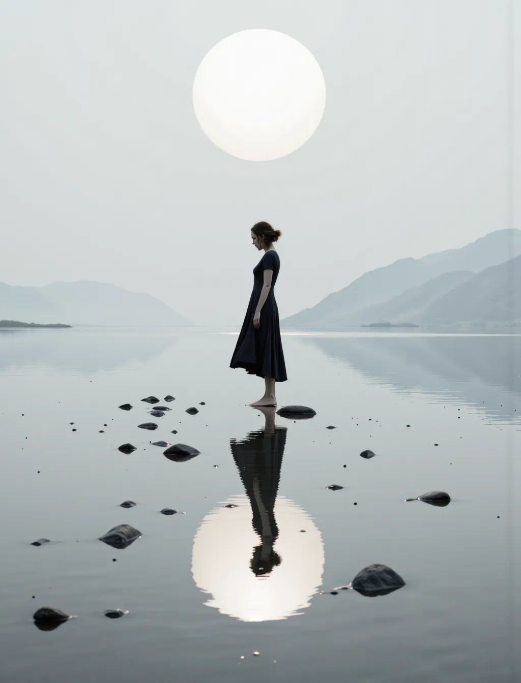 Crea una donna abbandonata da sola in un riflesso astratto