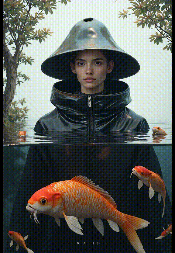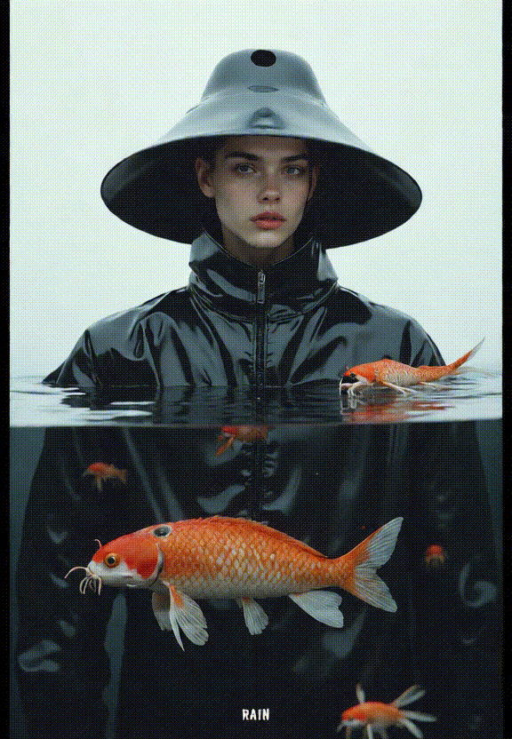 Crea un video AI simile a una foto;La ragazza vestita di nero nell'acqua
