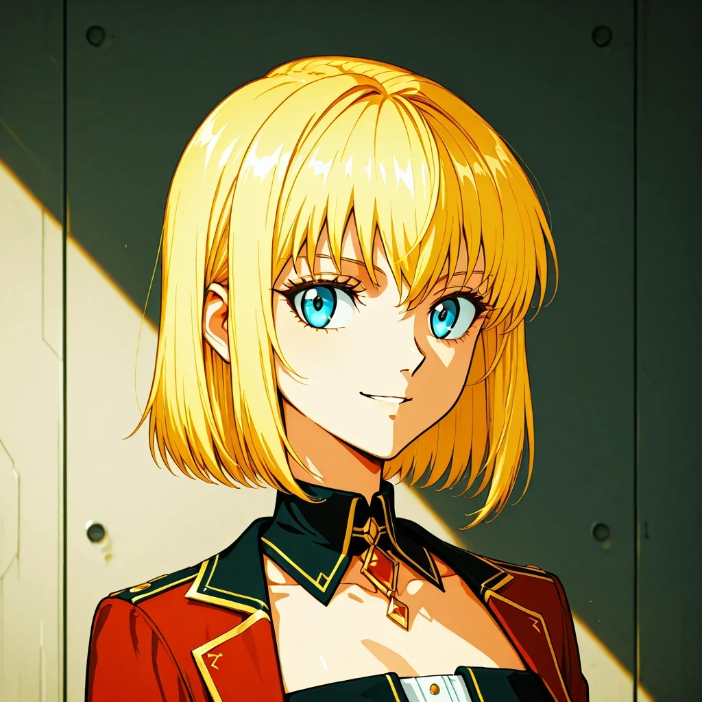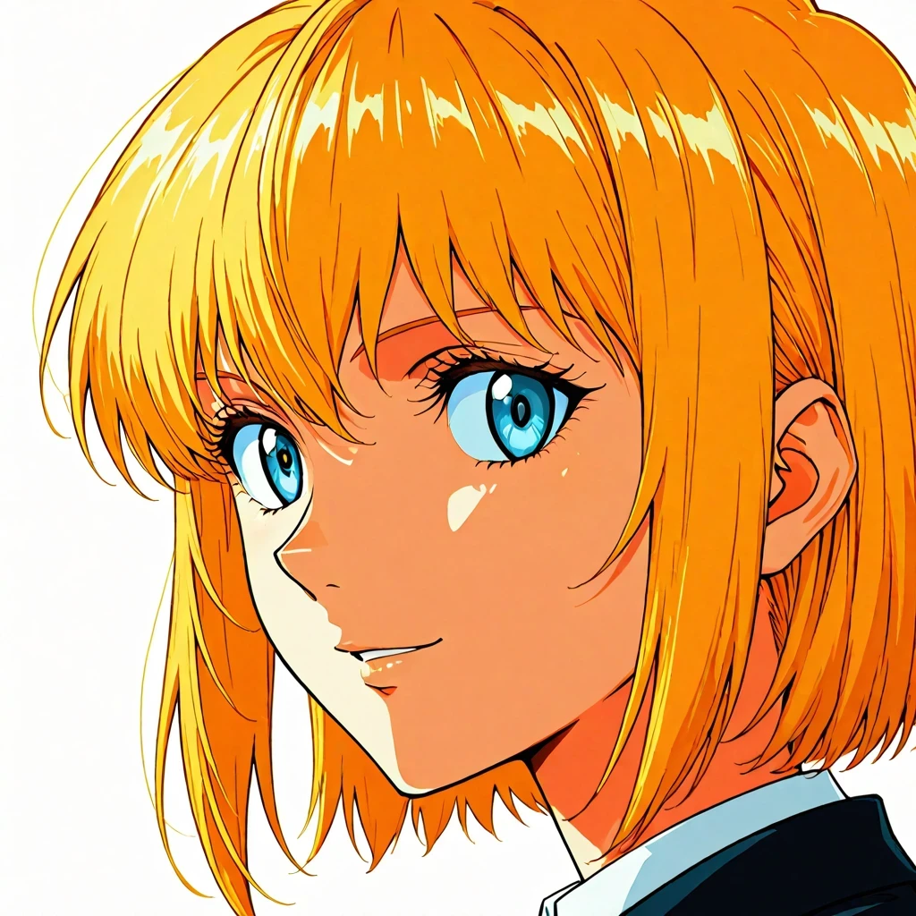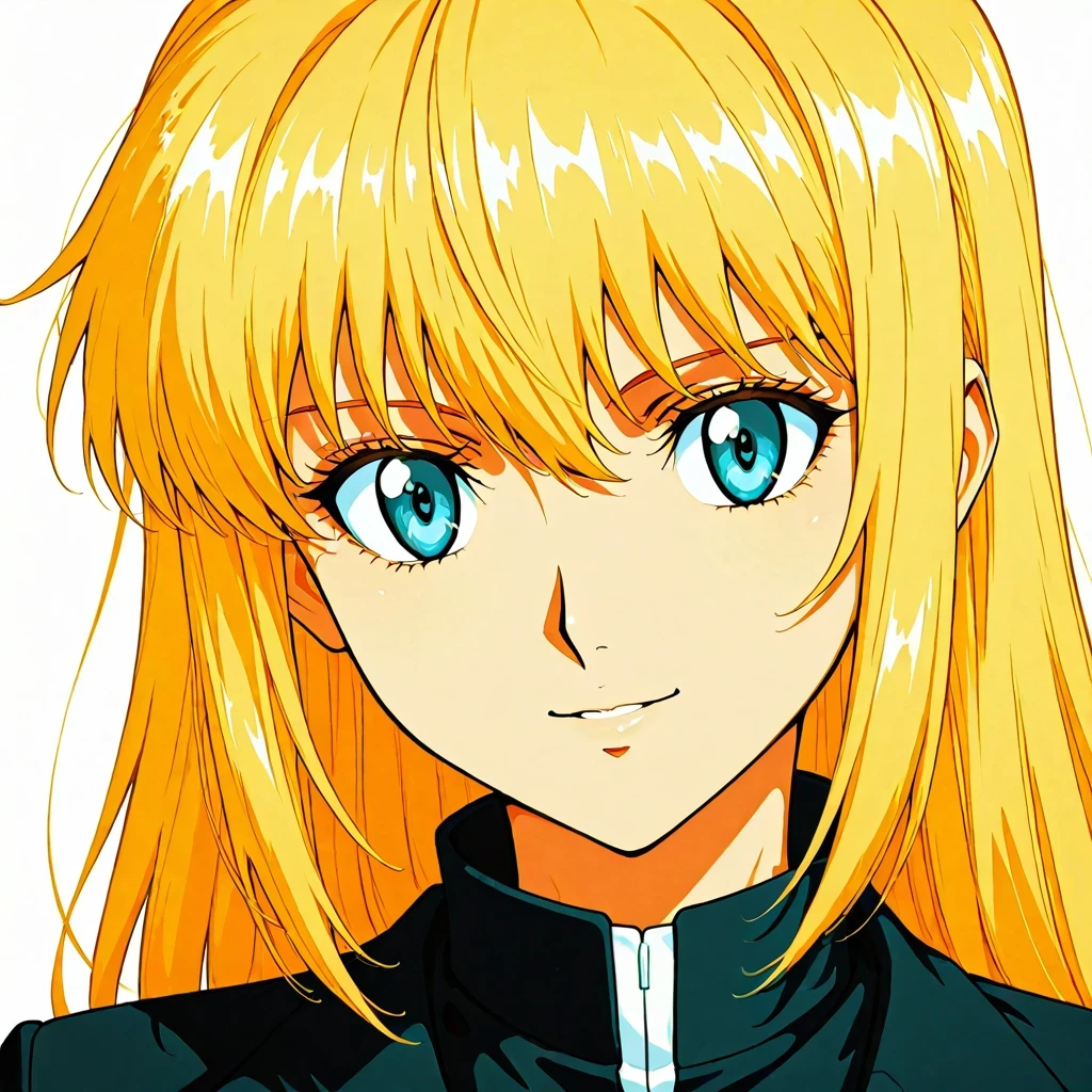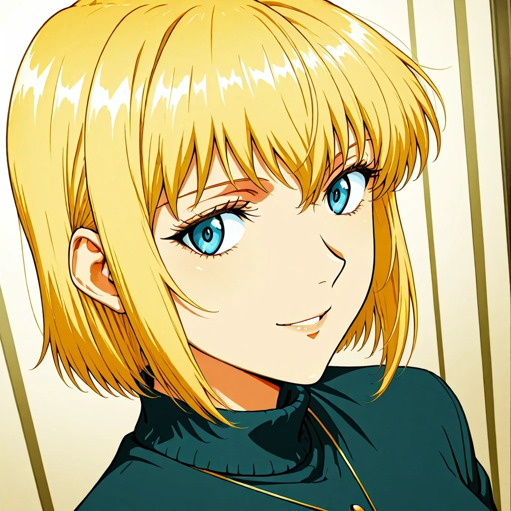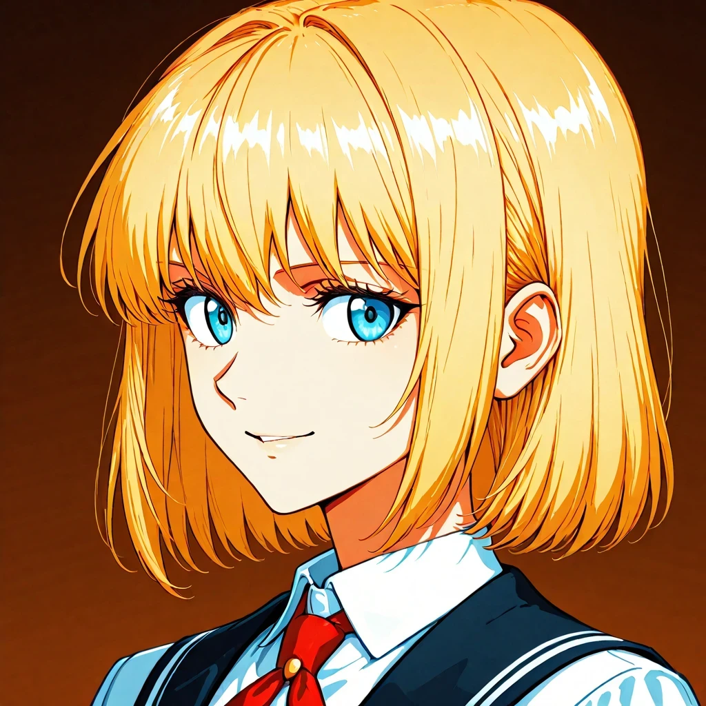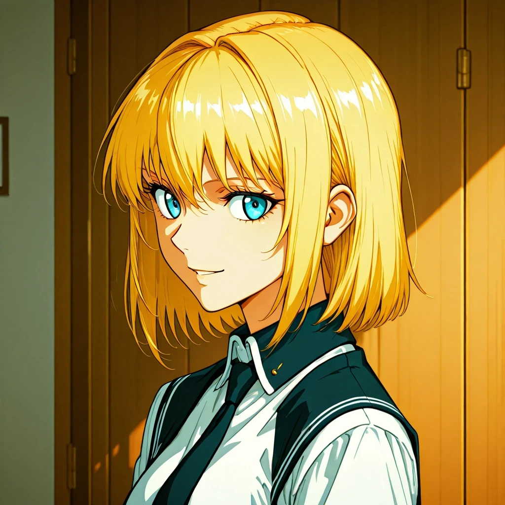 Bebebe, 1girl, solo, blue eyes, blond hair, short hair,