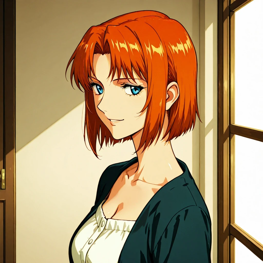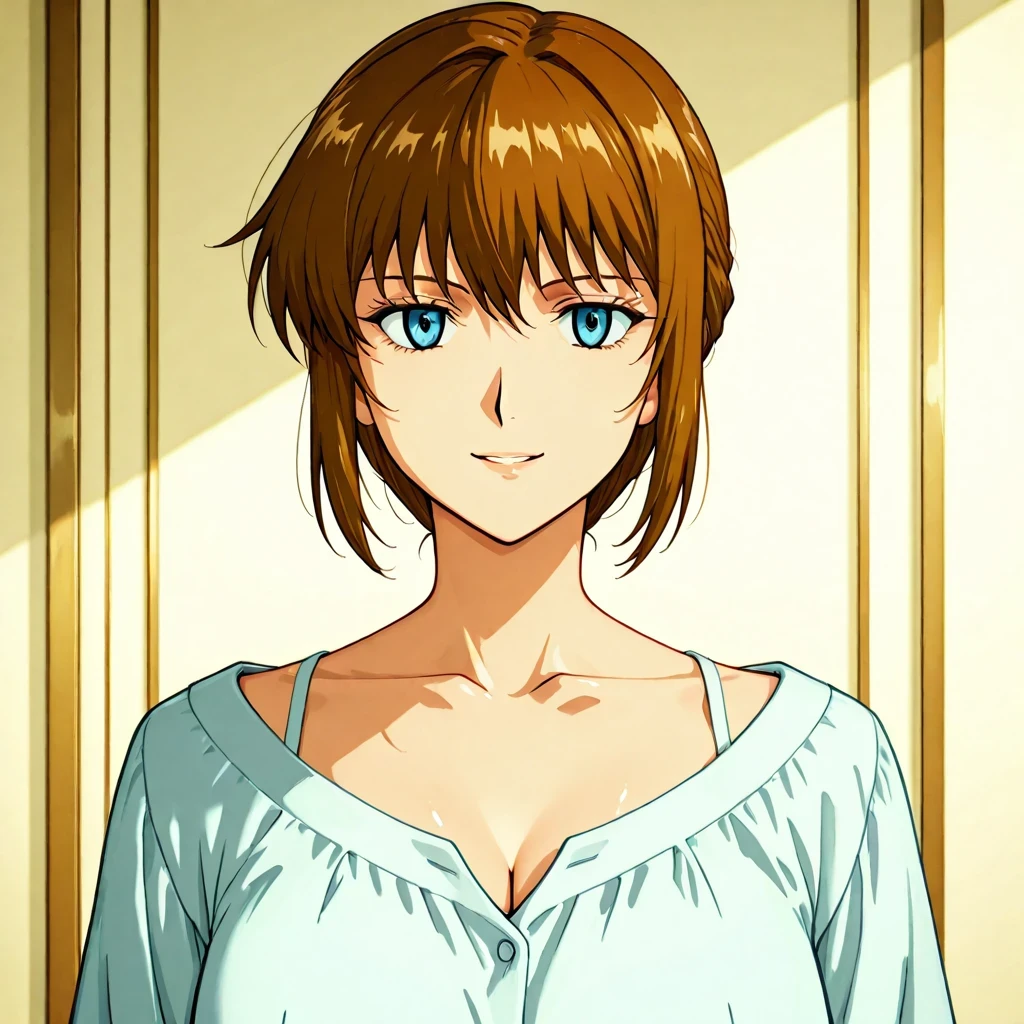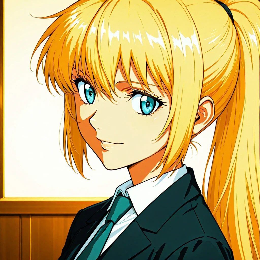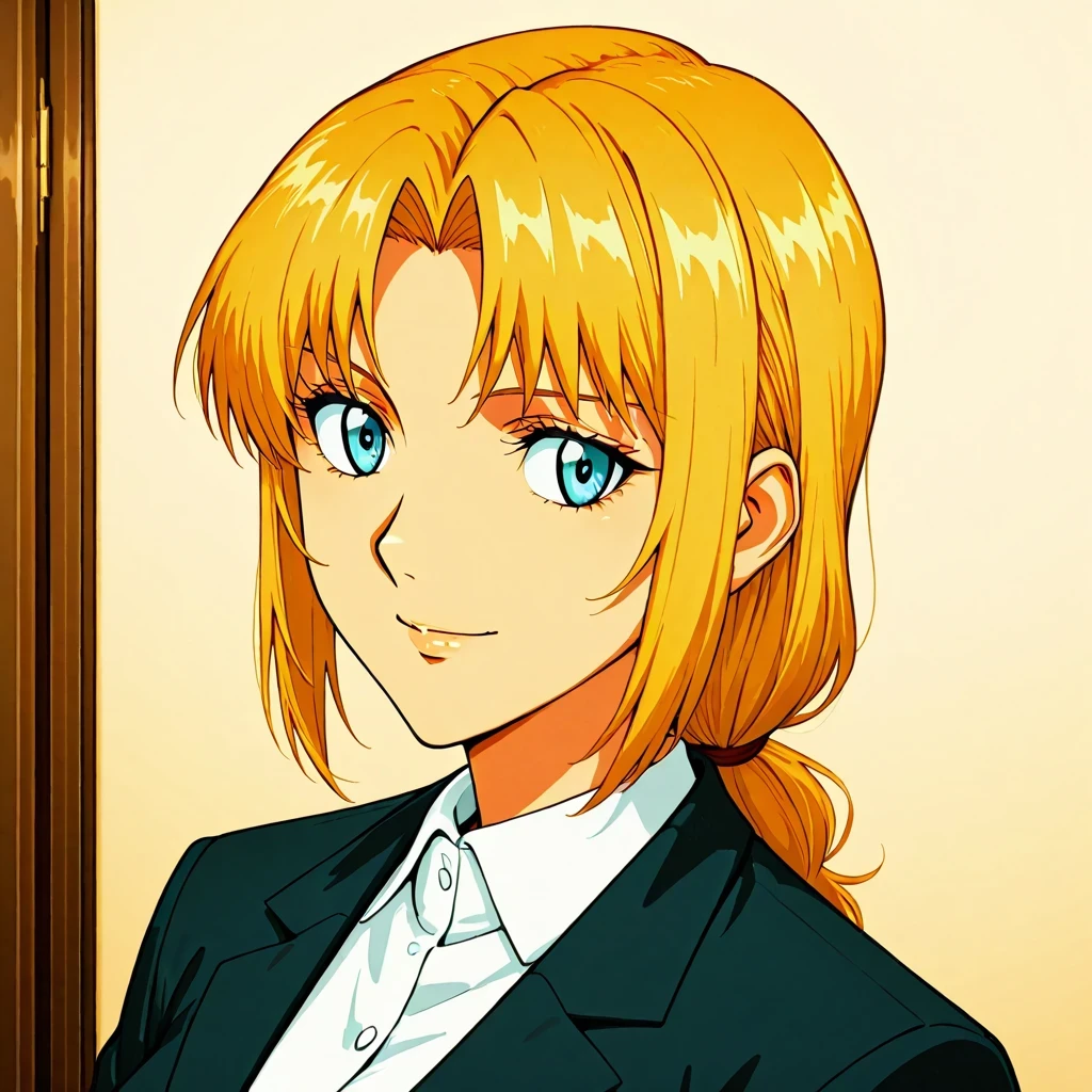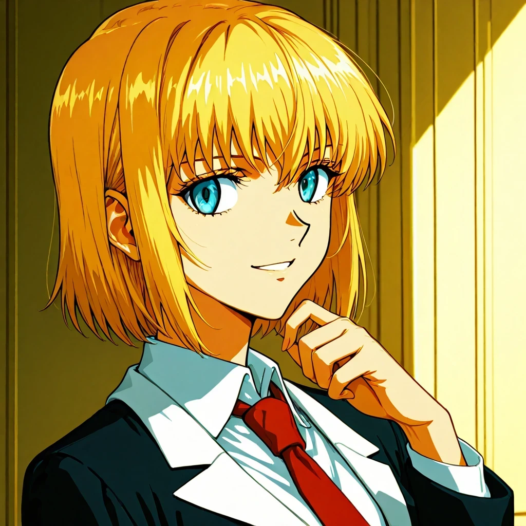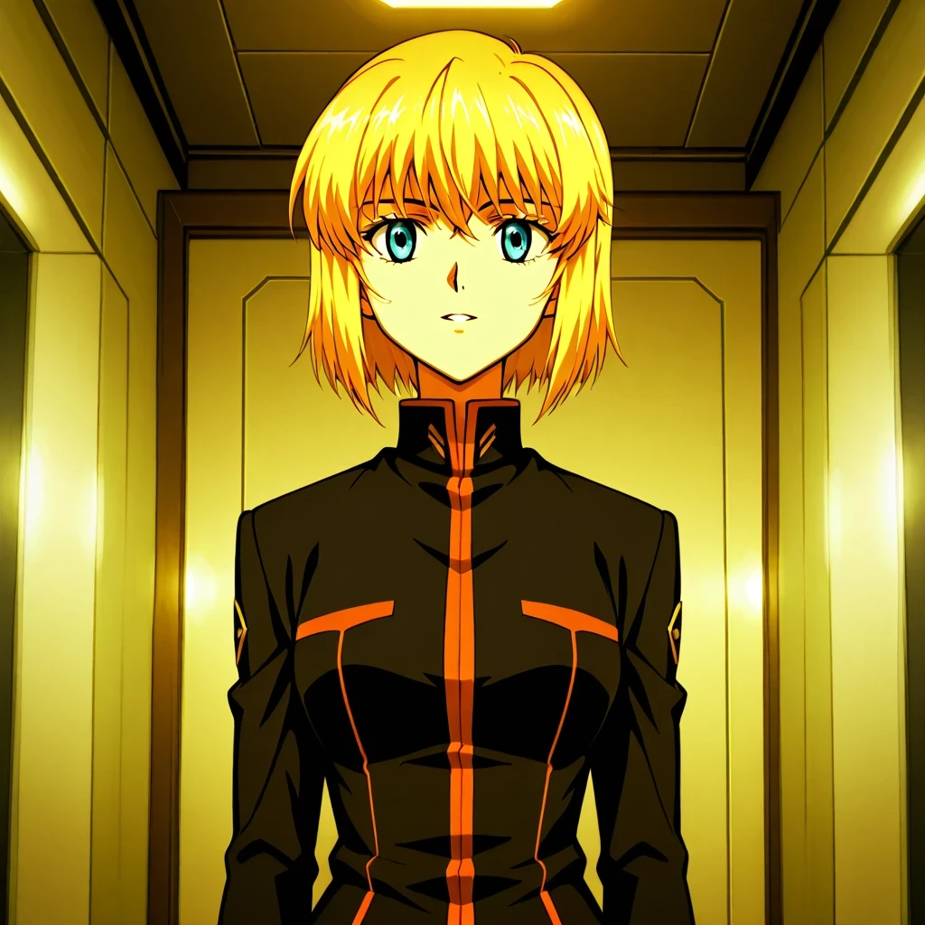 Bebebe, 1girl, solo, blue eyes, blond hair, short hair,