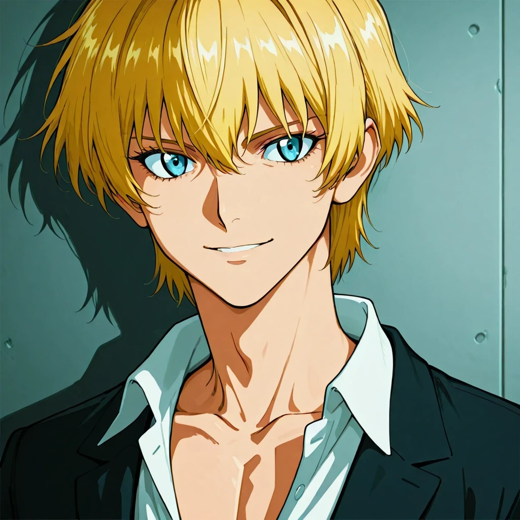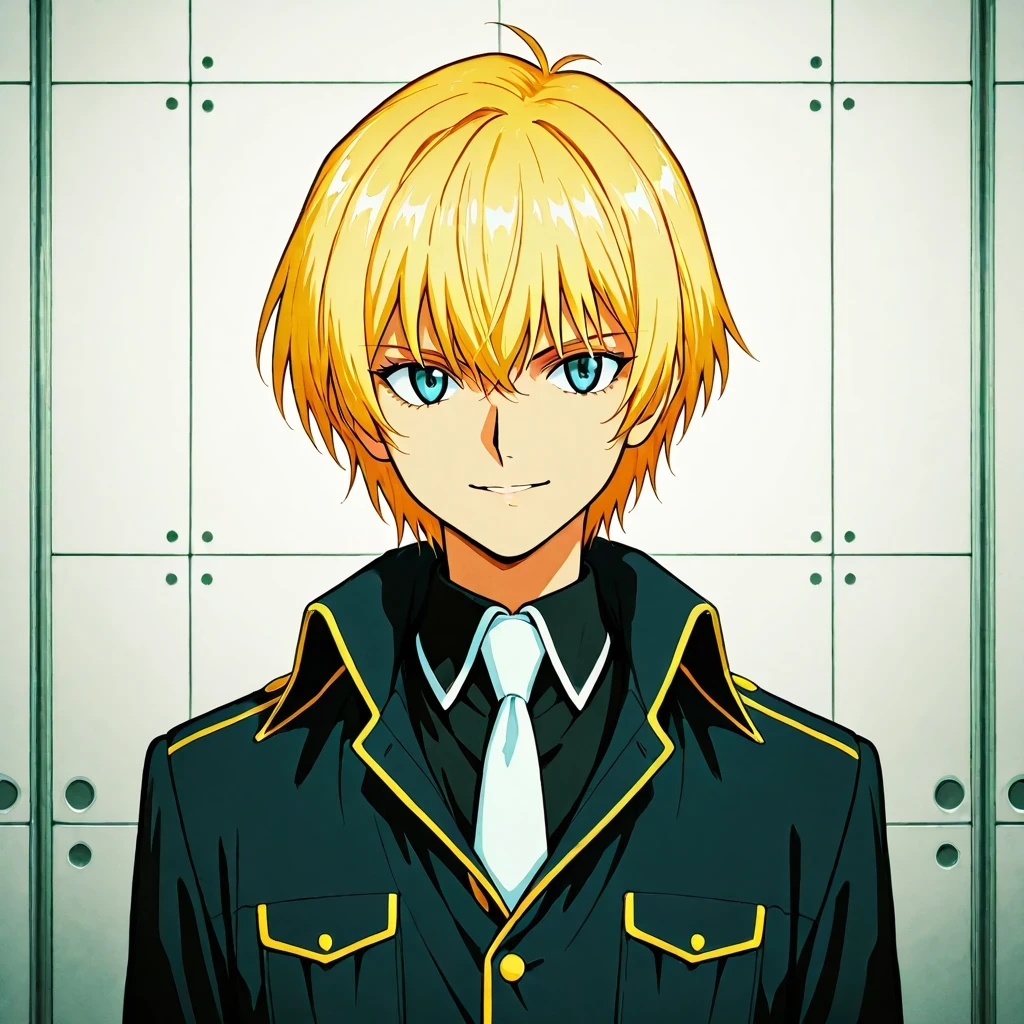 とうとう男性がでてきました。しかし金髪、青い目、ショートヘヤーは満たしていますね。次は特徴タグを消したLoRAでプロンプトなしの場合