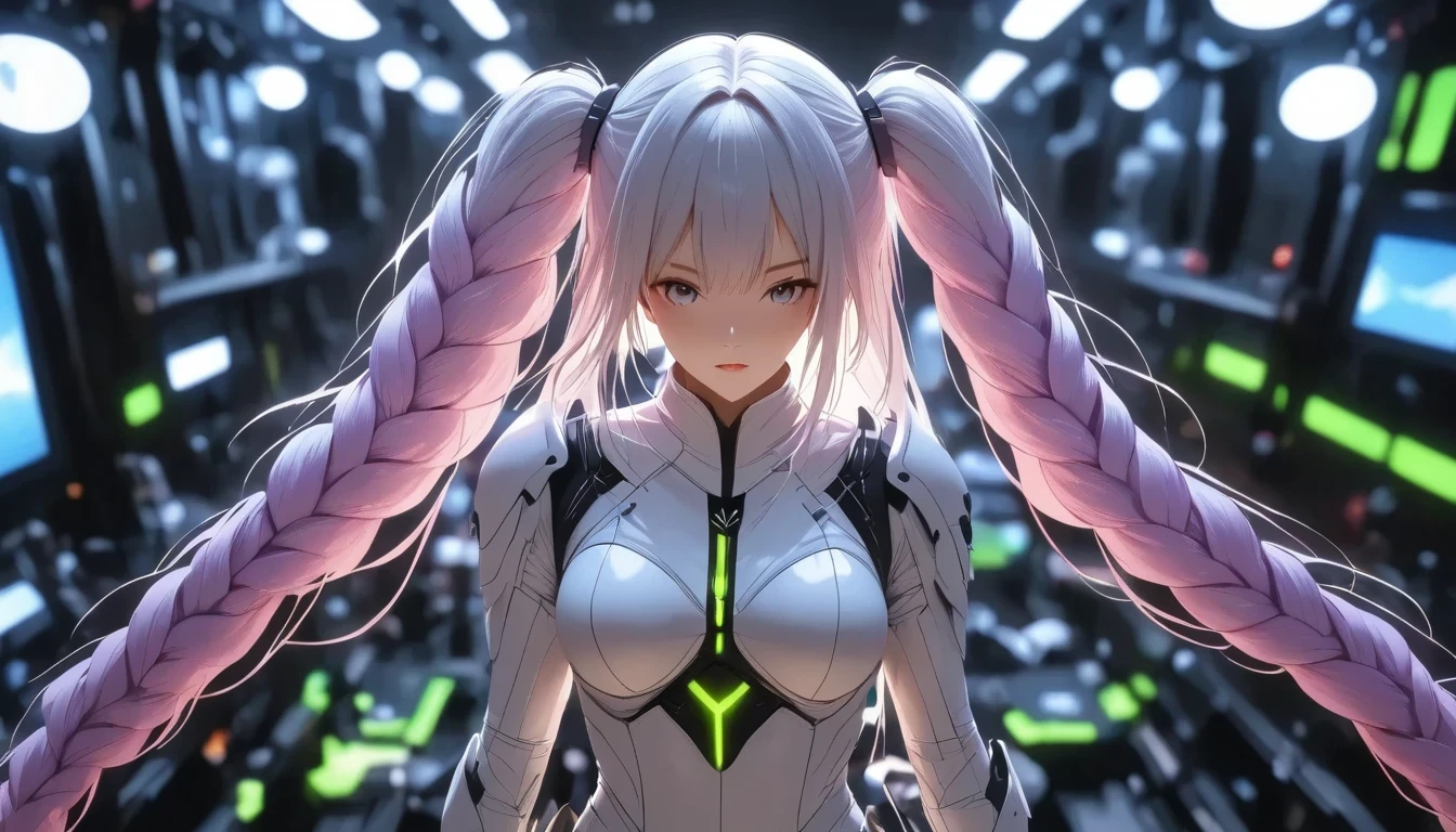 PC画面の中に被写体が閉じ込められています、まるでモニターが液状化したかのように歪み始めます。被写体は手を伸ばし、モニターを突き抜けると、粒子状に分解されながら現実世界へと脱出。光の粒が彼女の体を再構成し、ついにPCの外へ完全に出現する。カメラはダイナミックに動きながら、この超現実的な瞬間を捉え、まるでデジタルの世界から解き放たれる様子を映画のように表現する。背景はデジタルモザイクのディゾルブによって変化します。