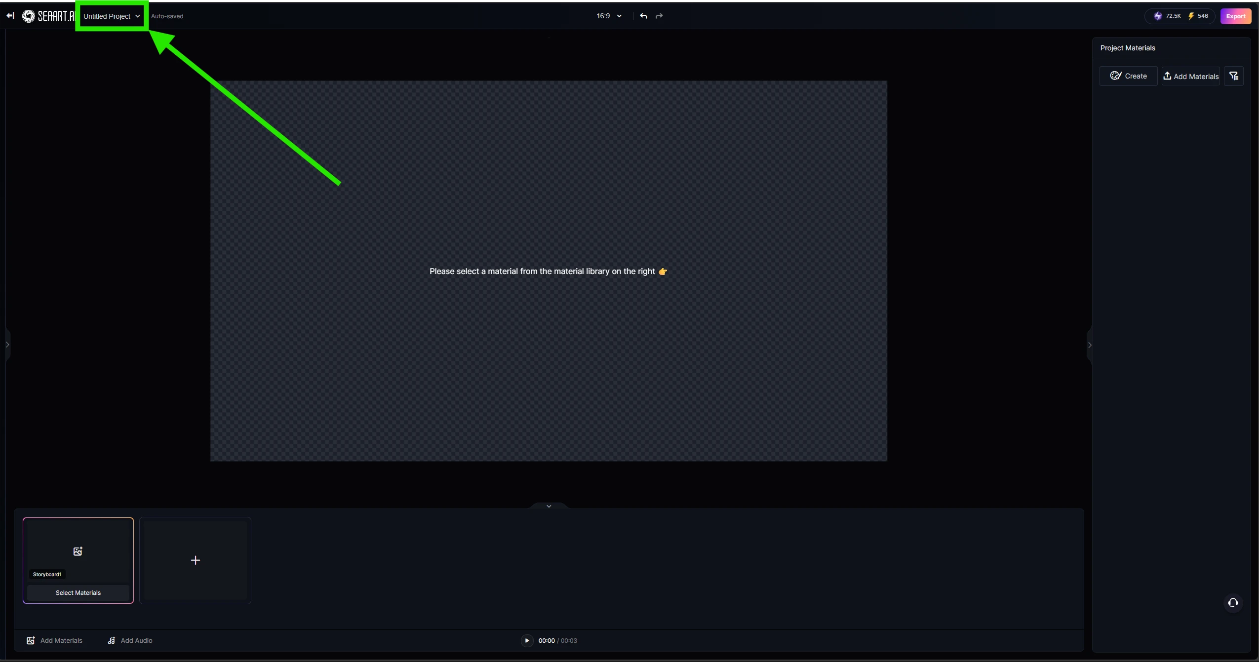 左上の【無題のプロジェクト】部分をダイレクト入力で分かりやすいタイトルに変更しておきましょう。