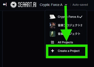 開いたプロジェクトの左上のドロップダウンメニューから【+ プロジェクトを作成】を選択します。