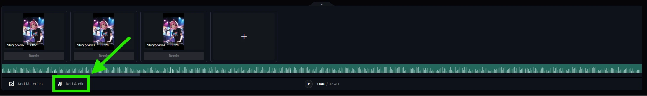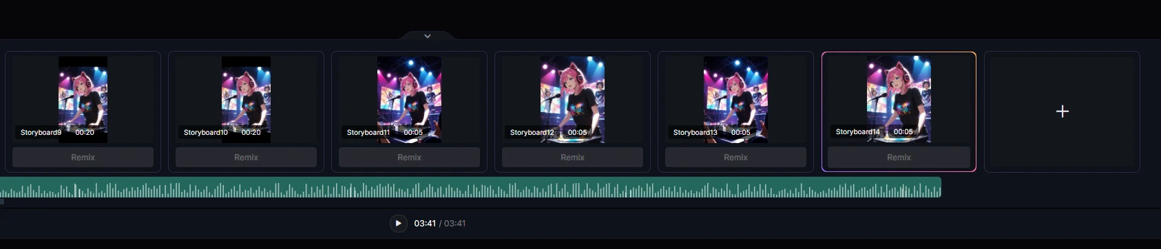下記参照画像の赤枠部分をクリックすることで、コンテが追加されていきますので、順番に素材を追加していきます。