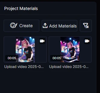 素材が追加されると、右のテーブルに下記のようなサムネイルが表示されます。