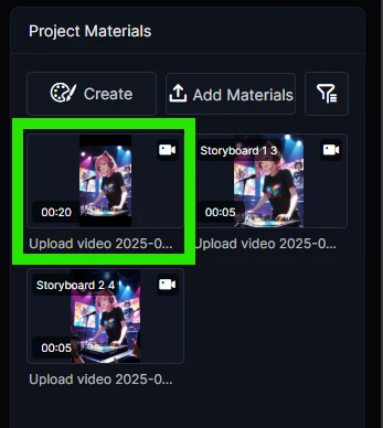 とりあえず、コンテを選択した状態で右端の挿入したい素材をクリックして、素材を反映させてみましょう。