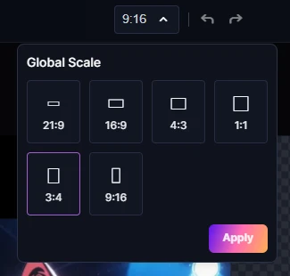 ここで、編集用のアスペクト比を【9 : 16】に変更します。