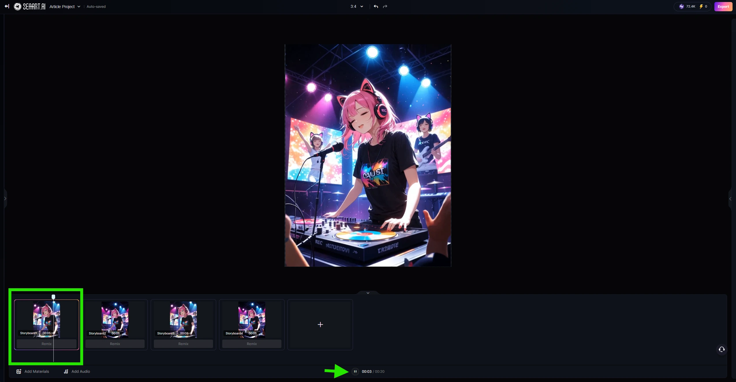 素材を設定したら、最初のコンテを選択した状態で再生して一度確認してみましょう。