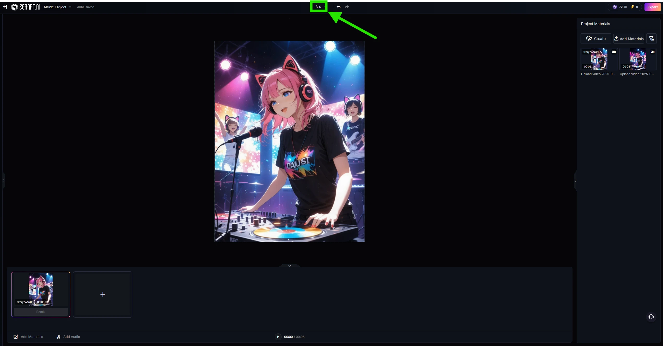 次に、素材のサイズに合わせて編集用のアスペクト比を変更します。