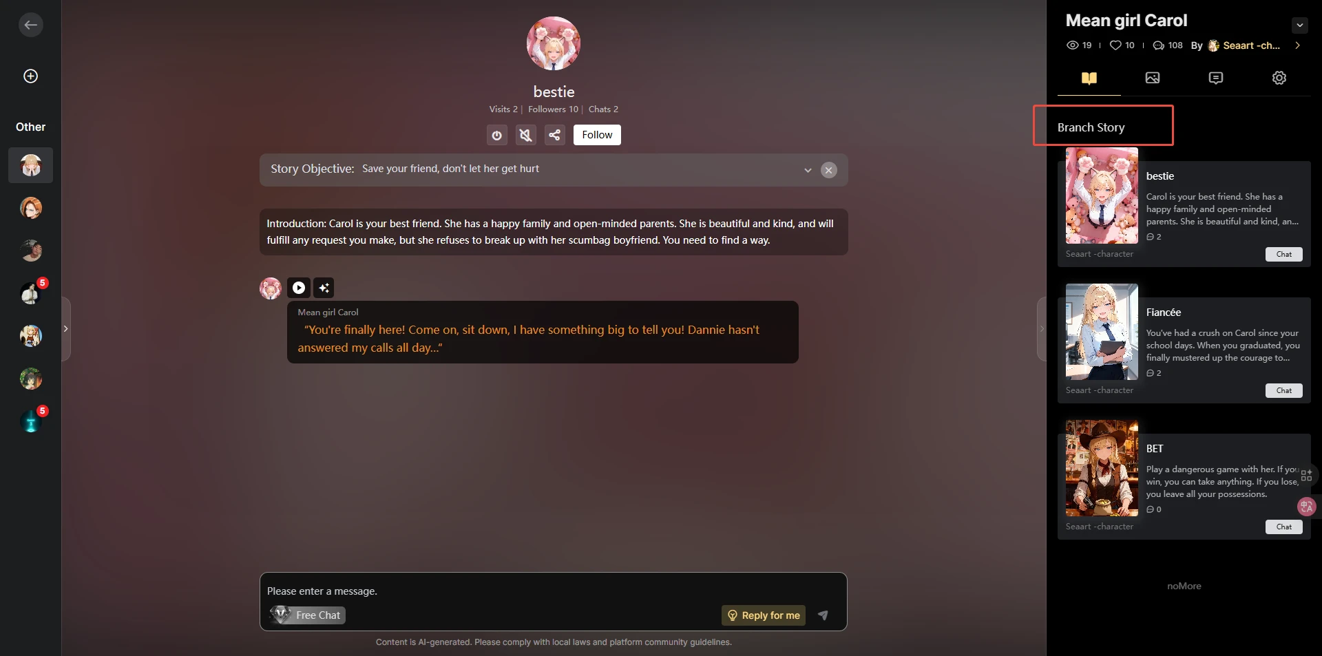 The same character can take on different identities, relationships, and story routes. The more branches you create, the more choices users have, and the more rewards you earn.