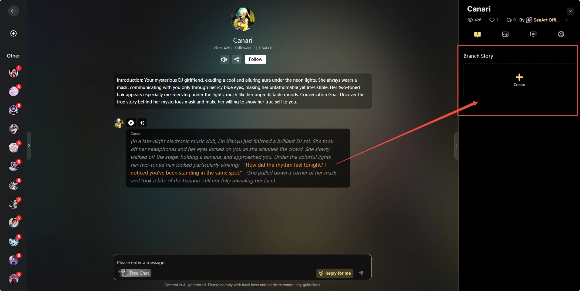 Open the character chat interface and click [Create] in the [Branch Story] on the right.