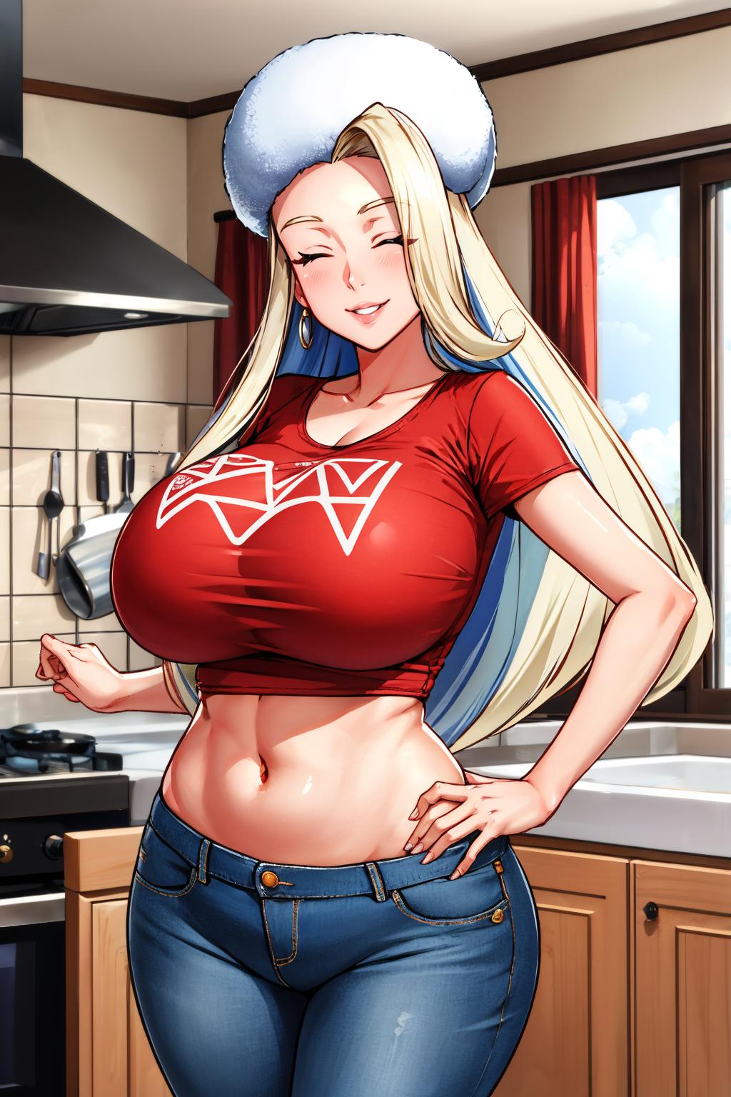 Also "huge breasts"