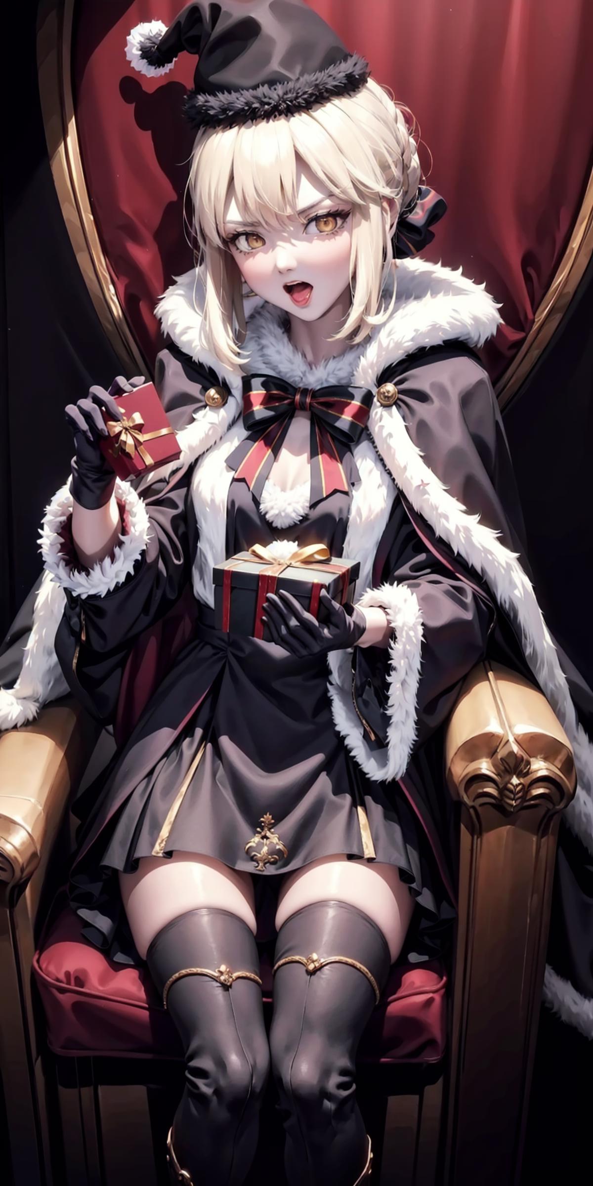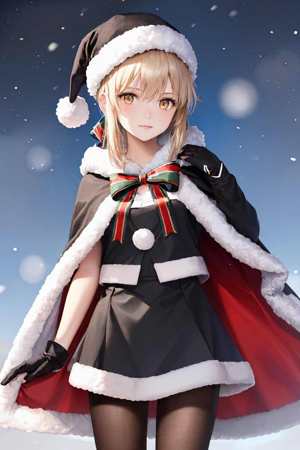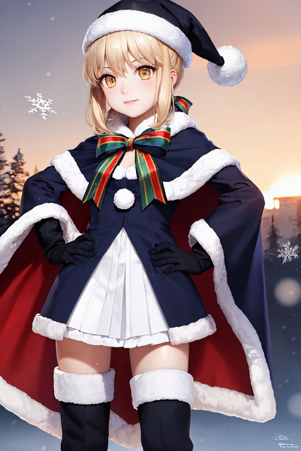 Santa Rider: sabaltsanta, santa hat, santa costume, cape, fur trim, pantyhose, thigh boots, black gloves