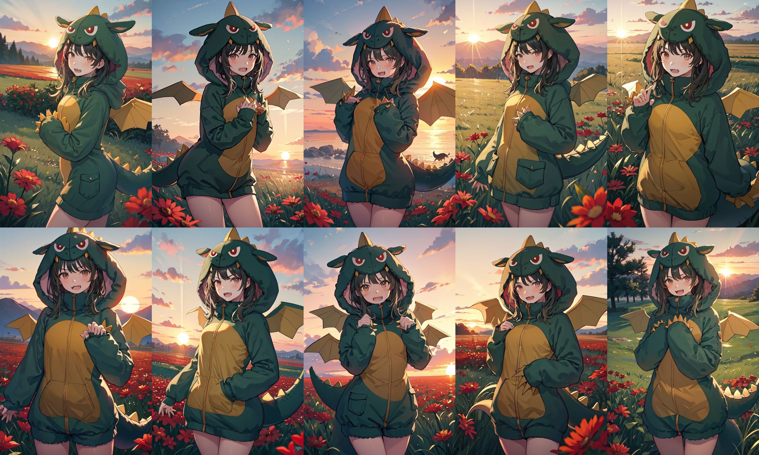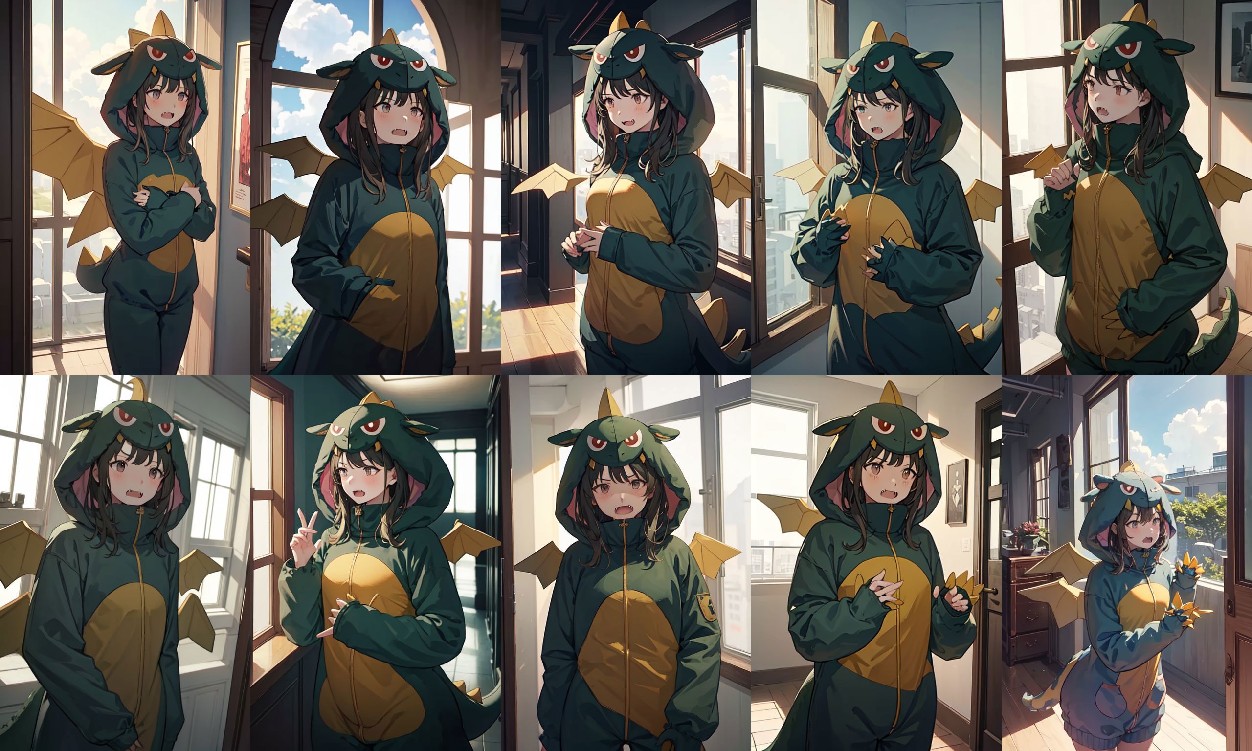 Single images in the preview are cherry-picked from random prompts. Image grids are unfiltered (seed=0-9).