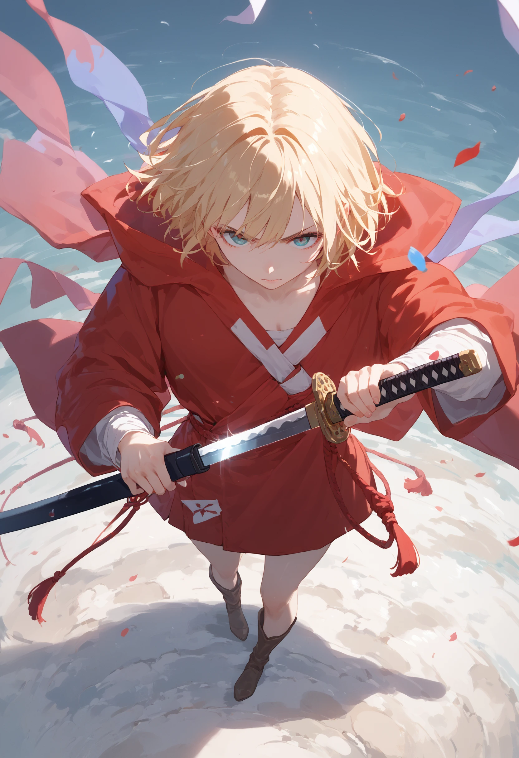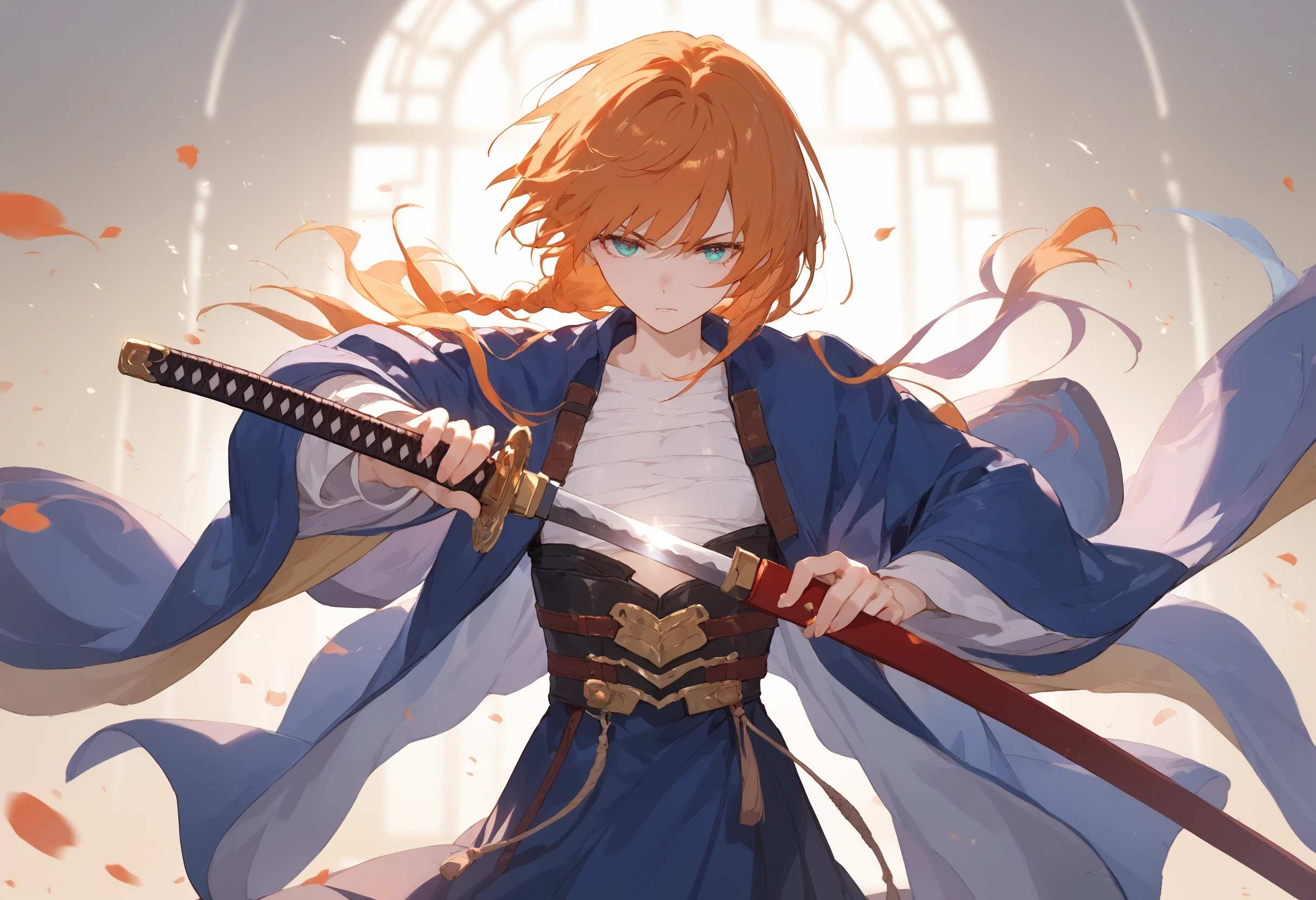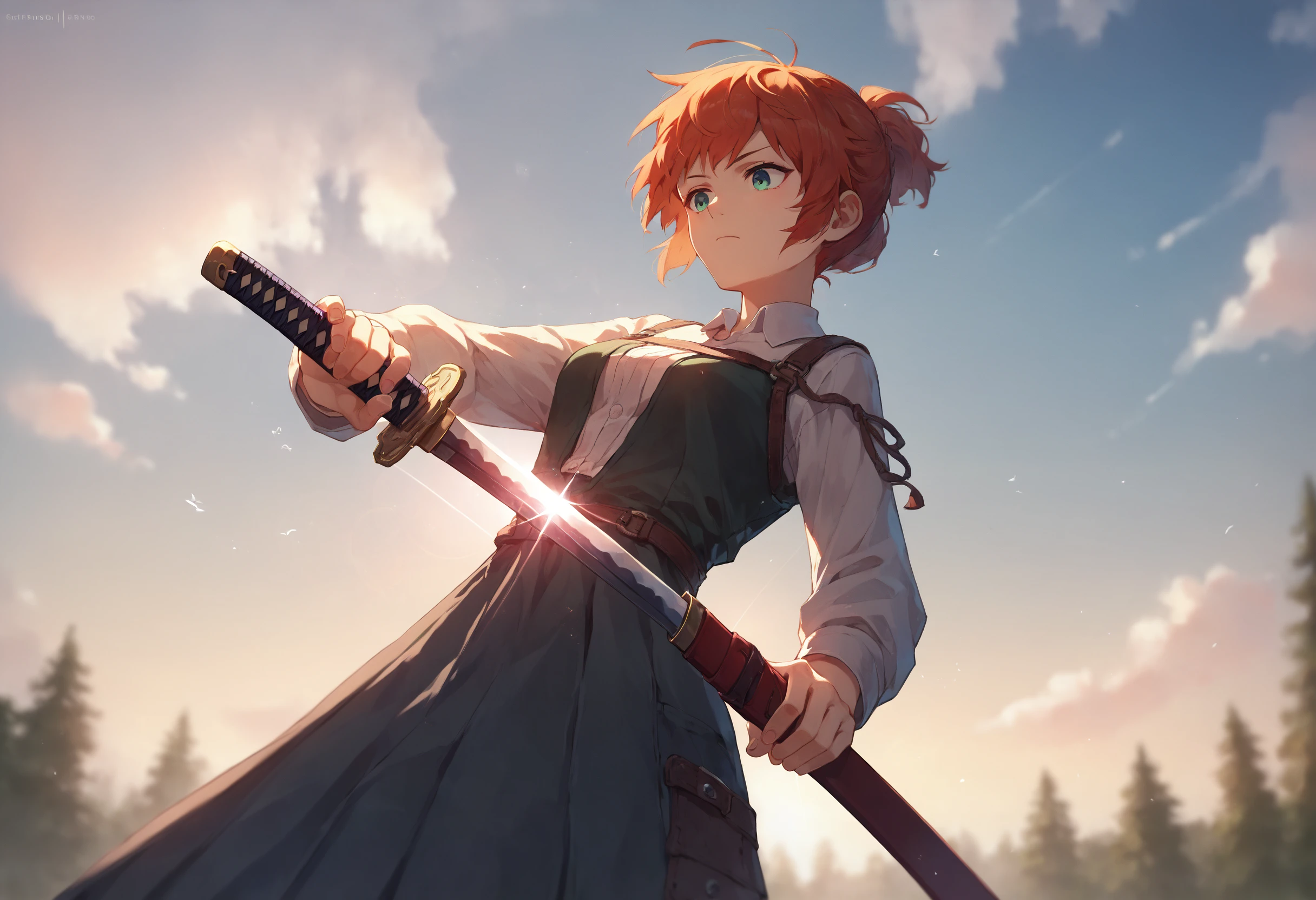 Unlike my previous unsheathing pose LoRA, I'm categorizing this one as a concept: it has more flexible poses and ability to react differently to prompts, such as from below, from above, from side, full body, squatting, kneeling, standing, arm up ... although not all scenarios can be handled well.